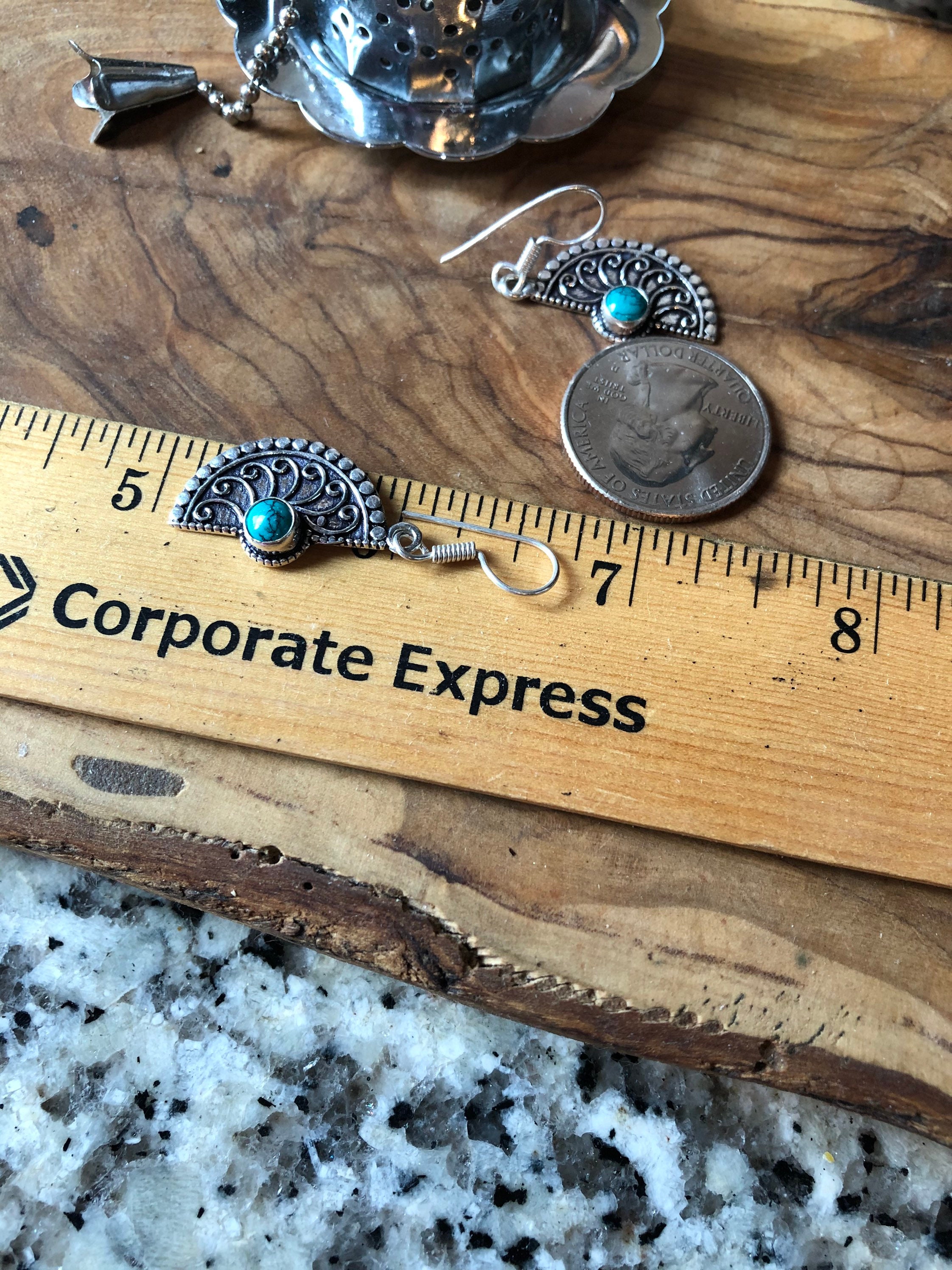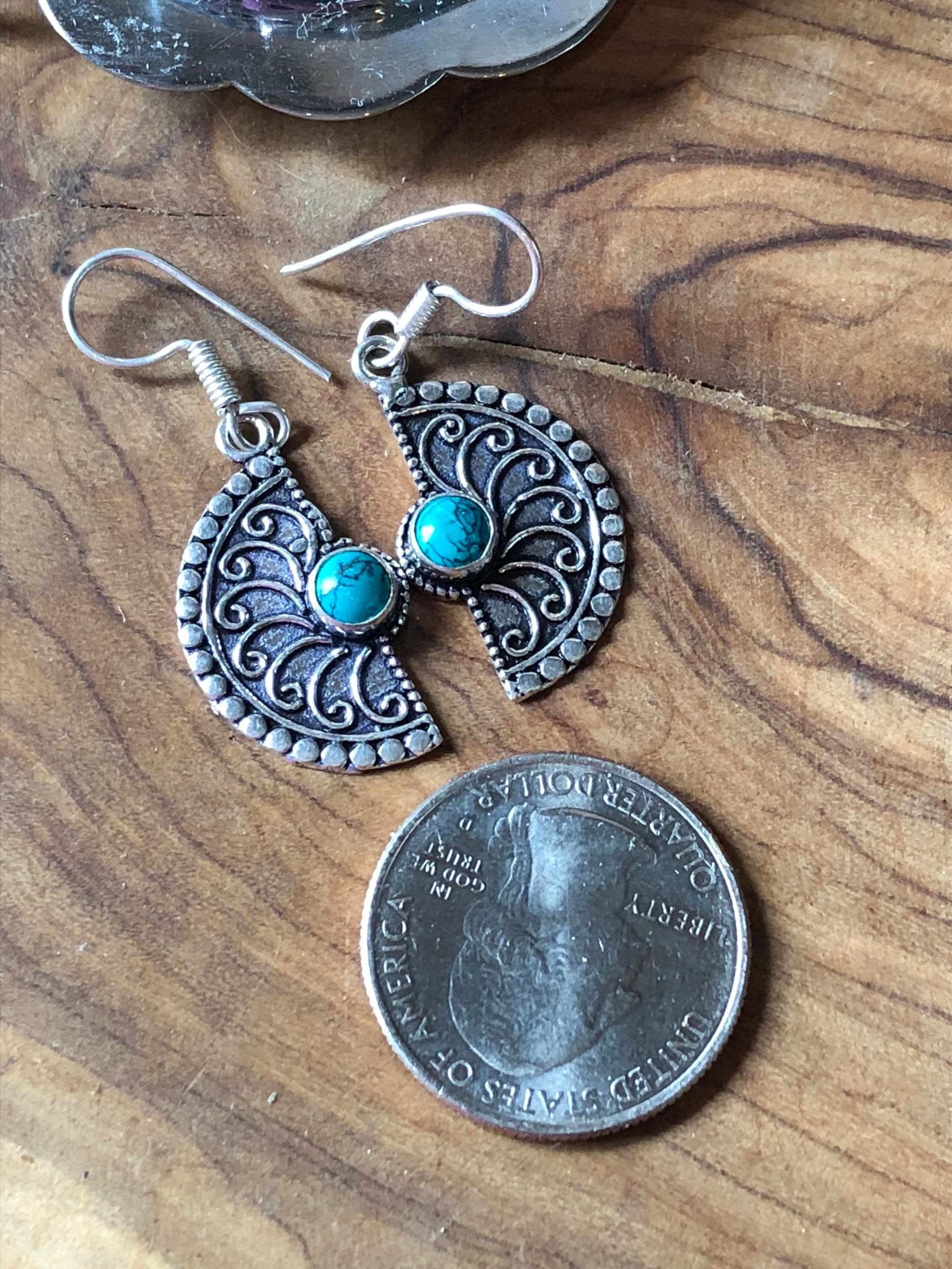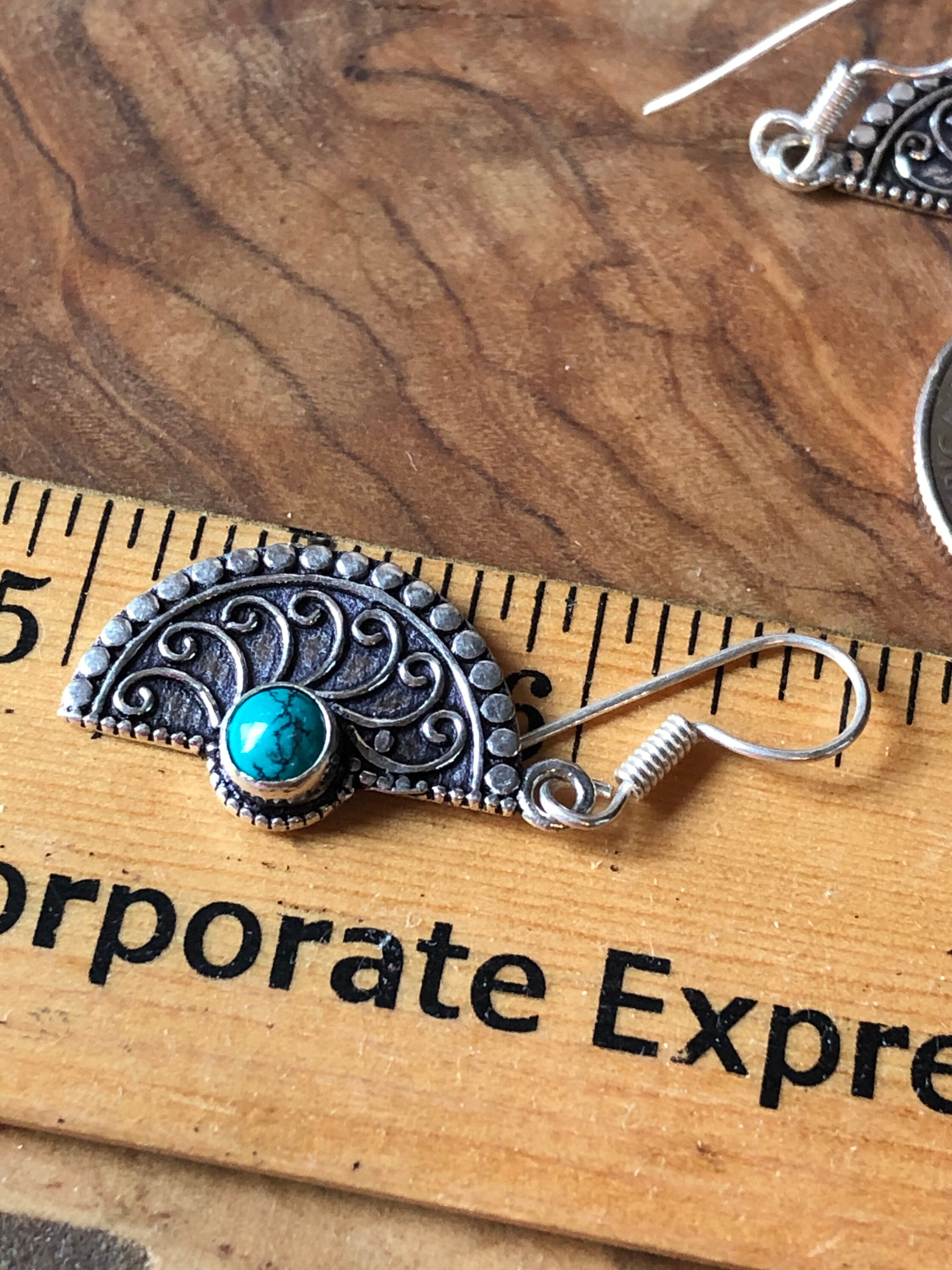 Pretty 925 Silver Stamped Faux Turquoise Dangle Earrings