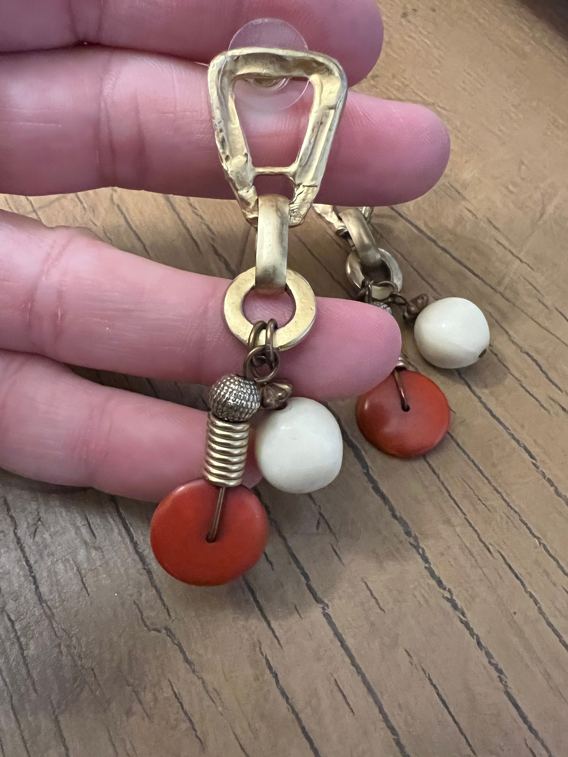 Vintage Tribal Style Dangle Gold Tone Earrings