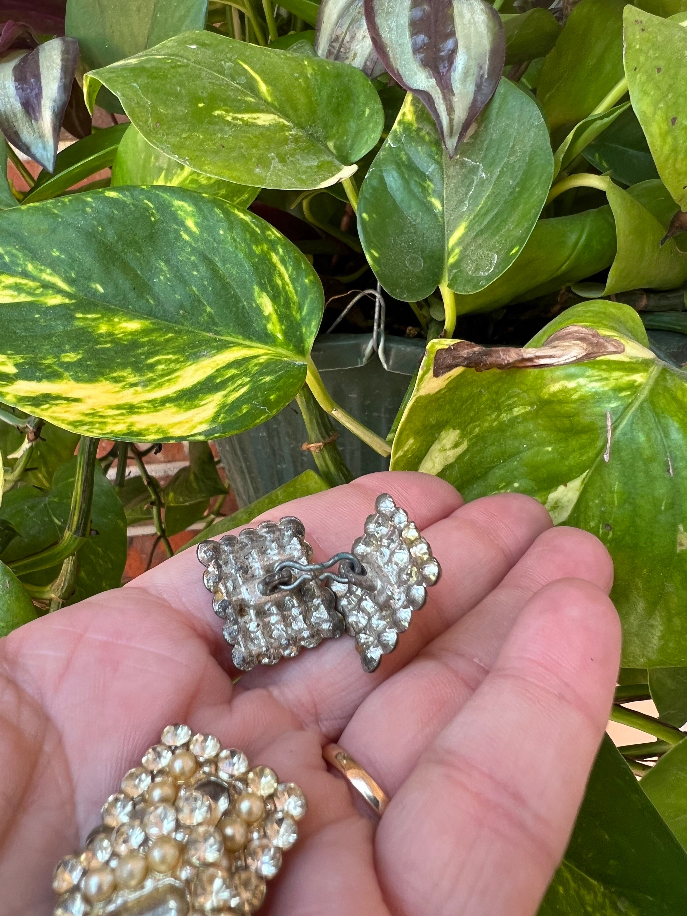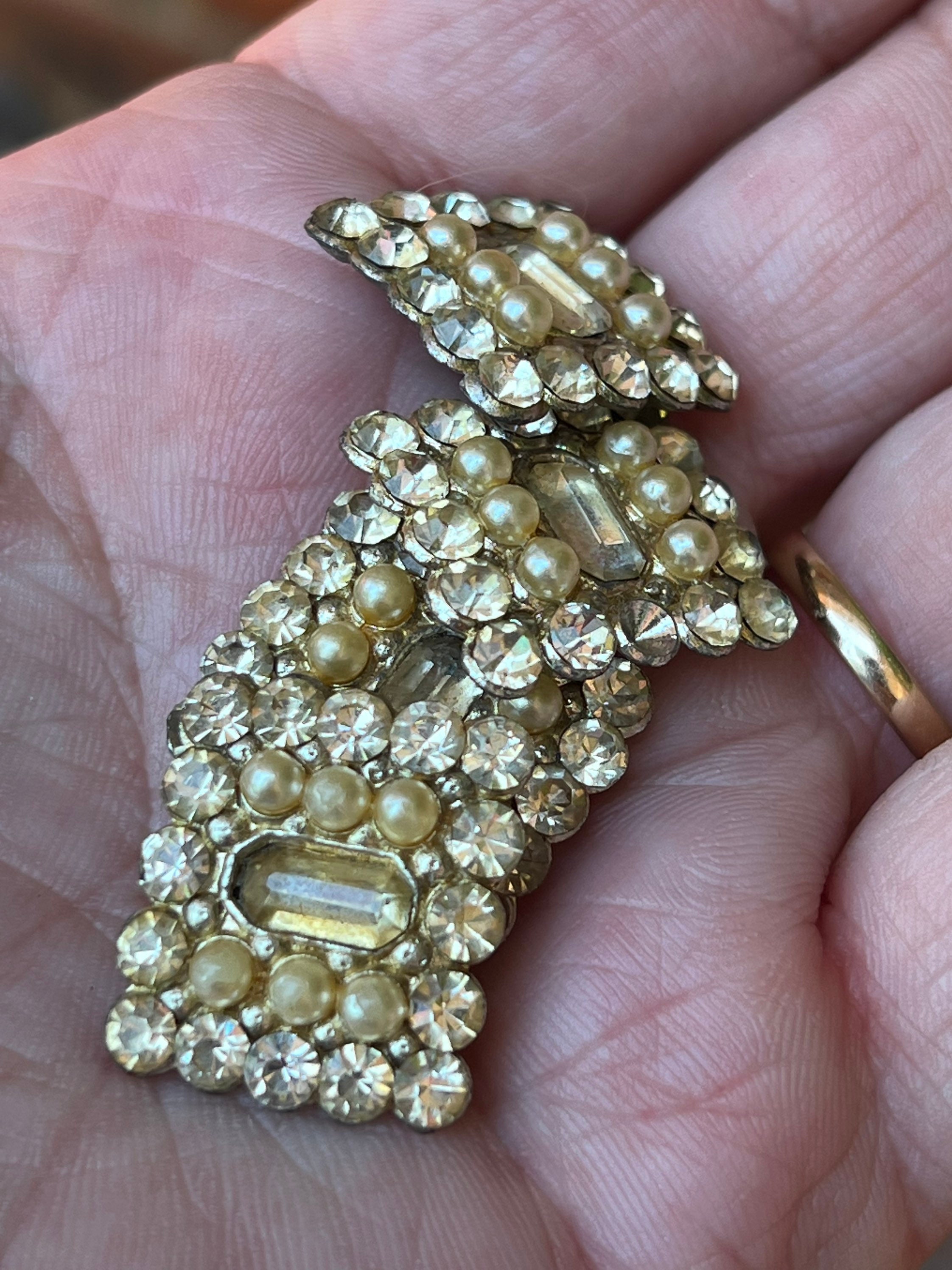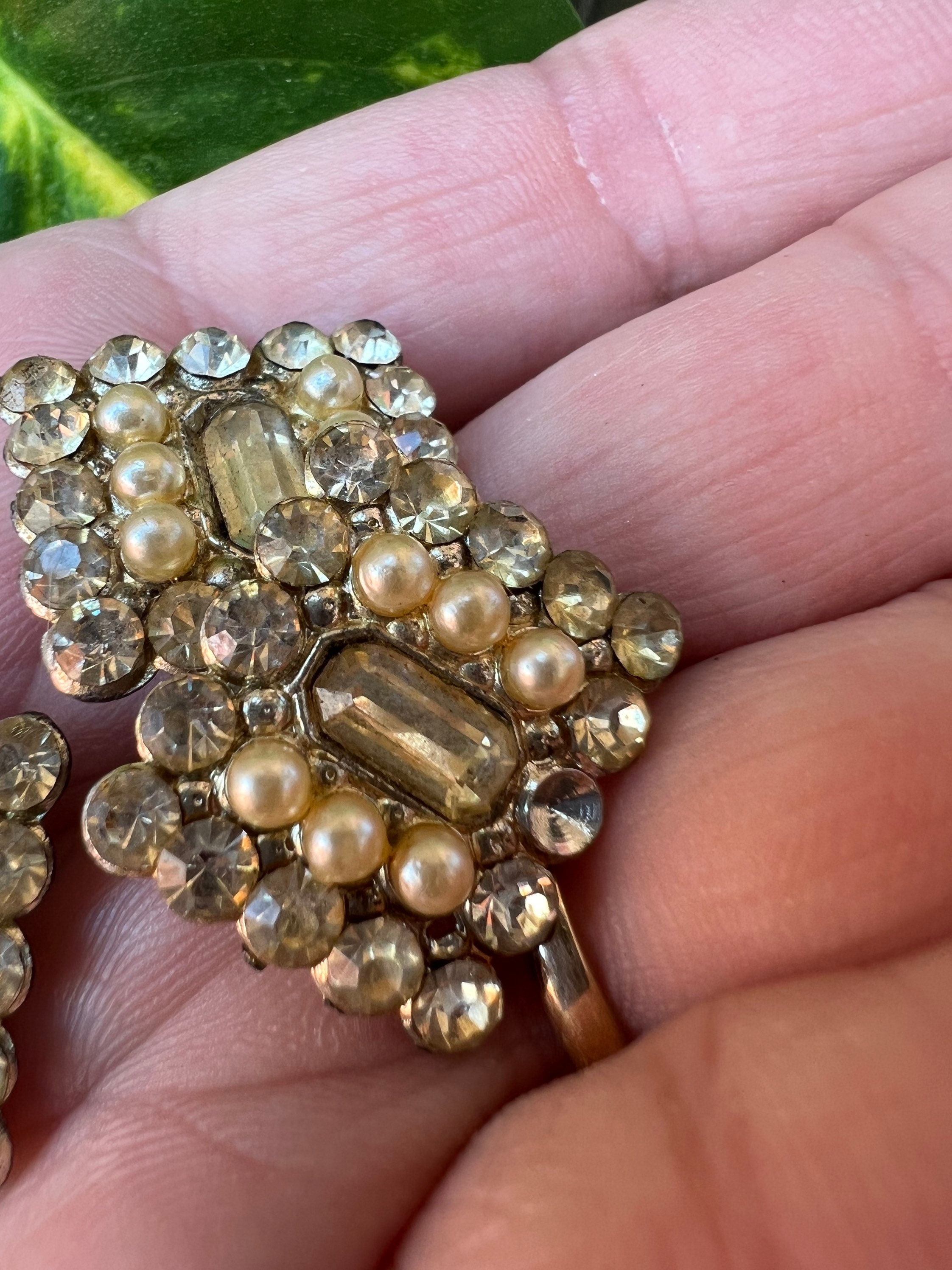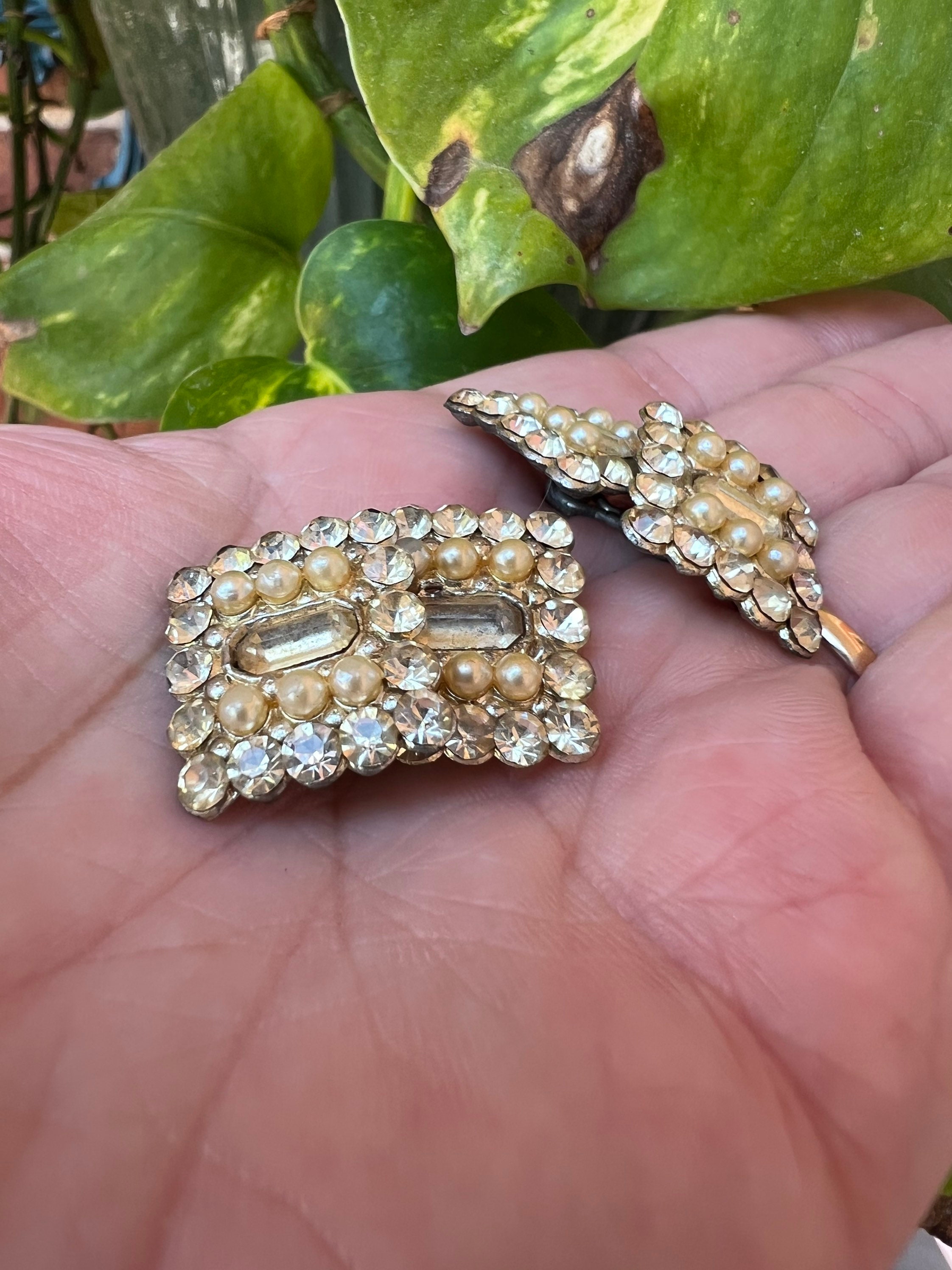 Vintage Seed Pearl and Rhinestone Art Deco Cufflinks