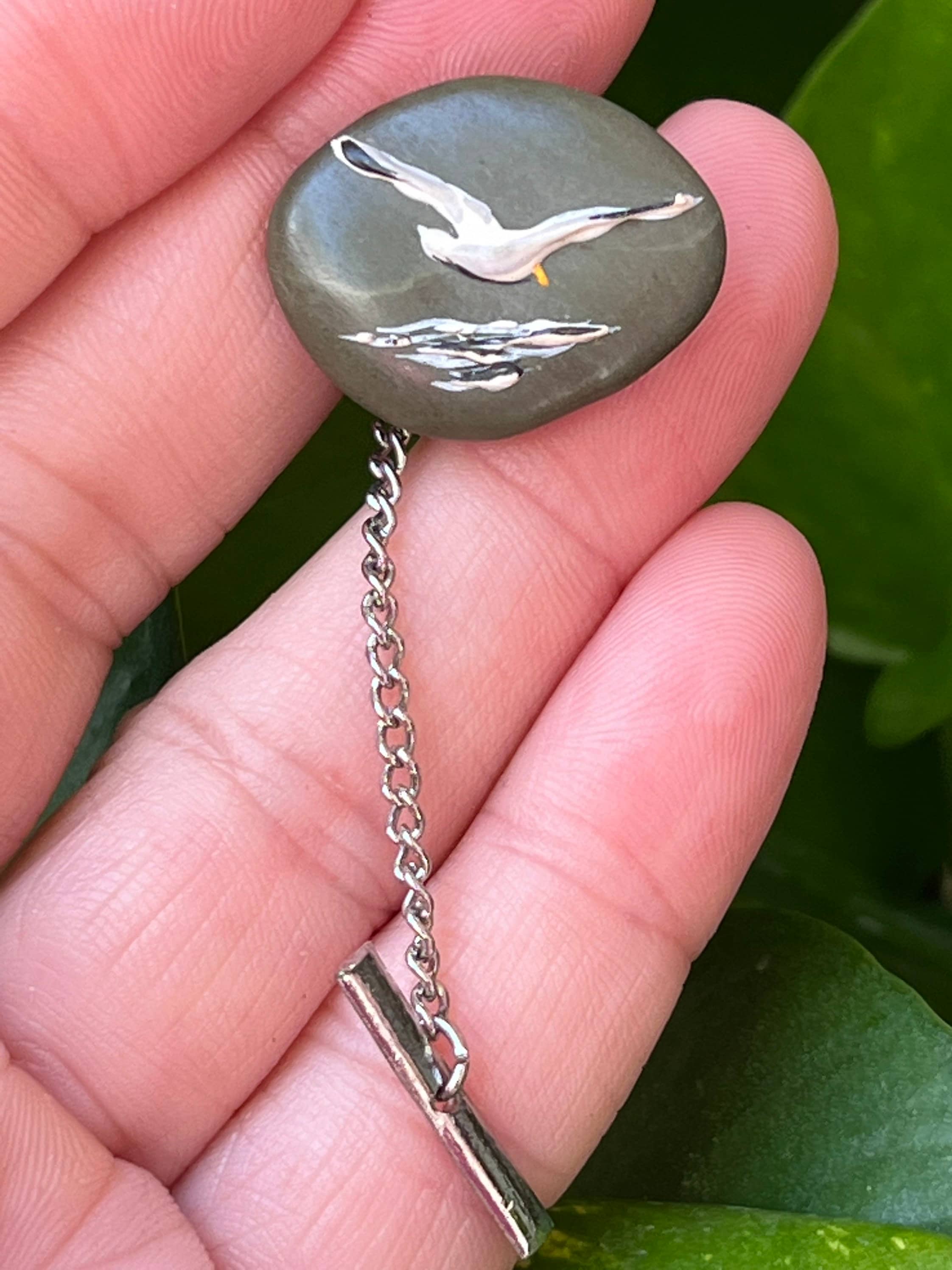 Vintage Water Fowl Artisan Tie Tack with Safety Chain