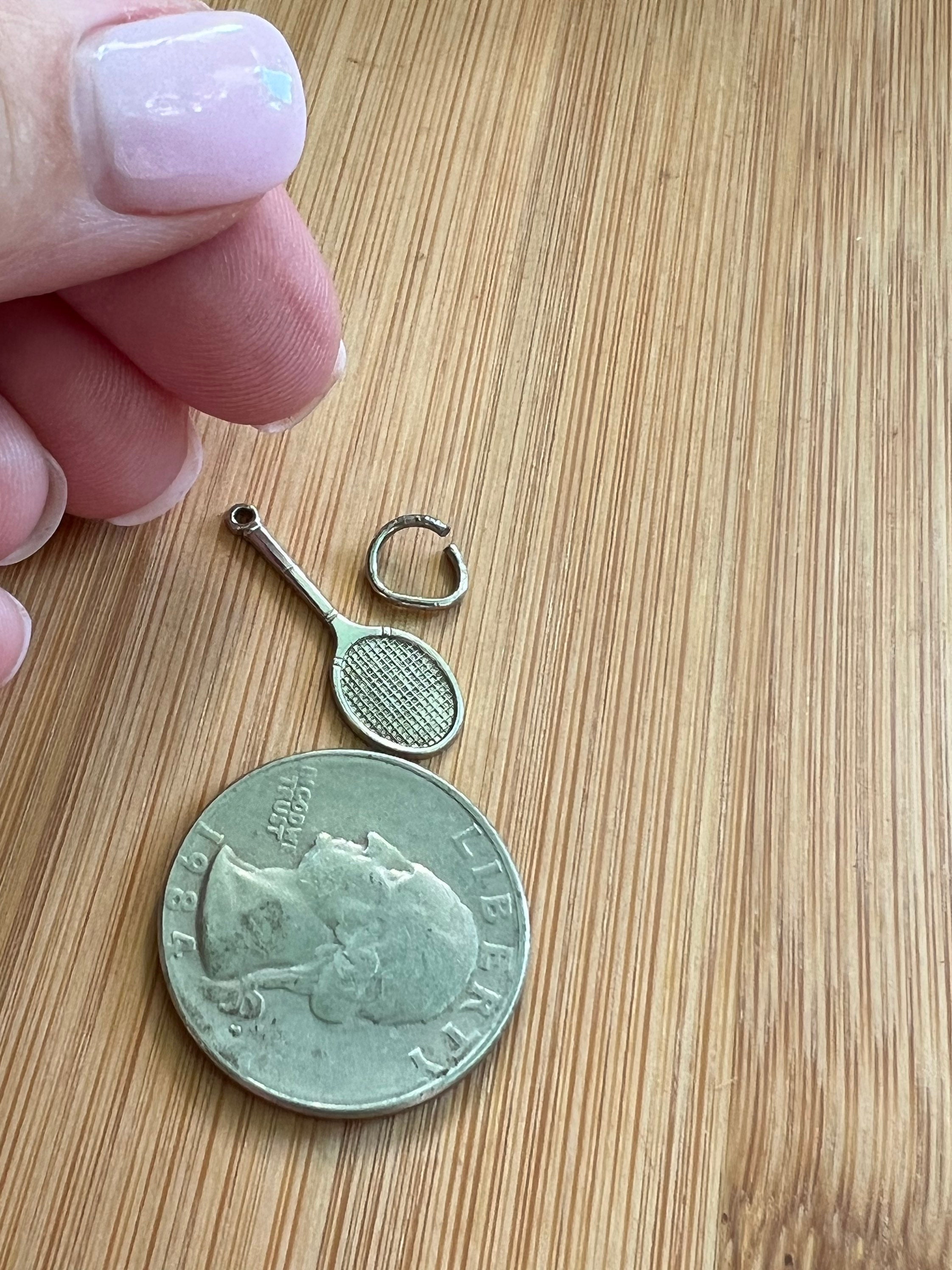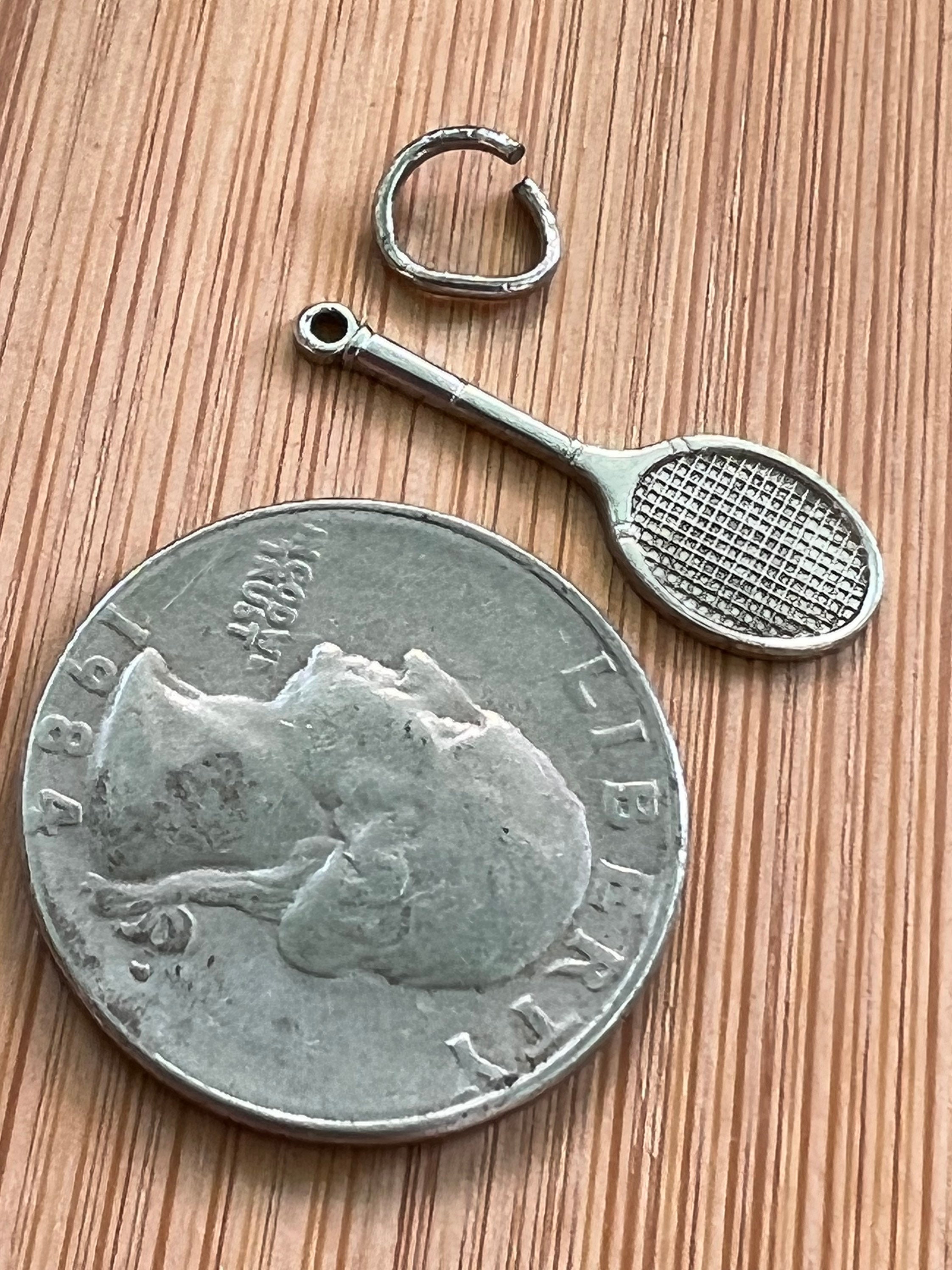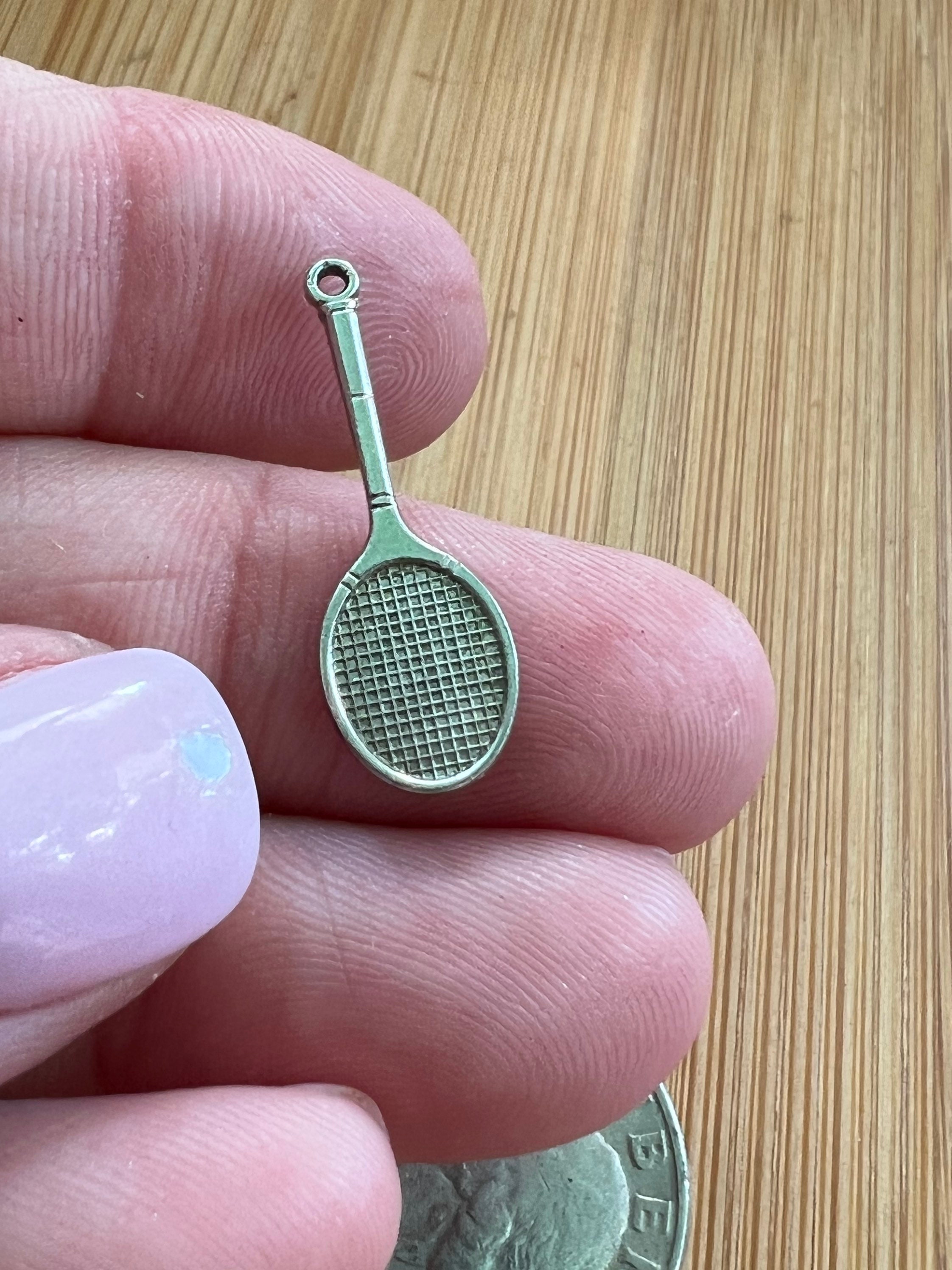925 Silver Stamped Tennis Racket Charm for your Charm Bracelet