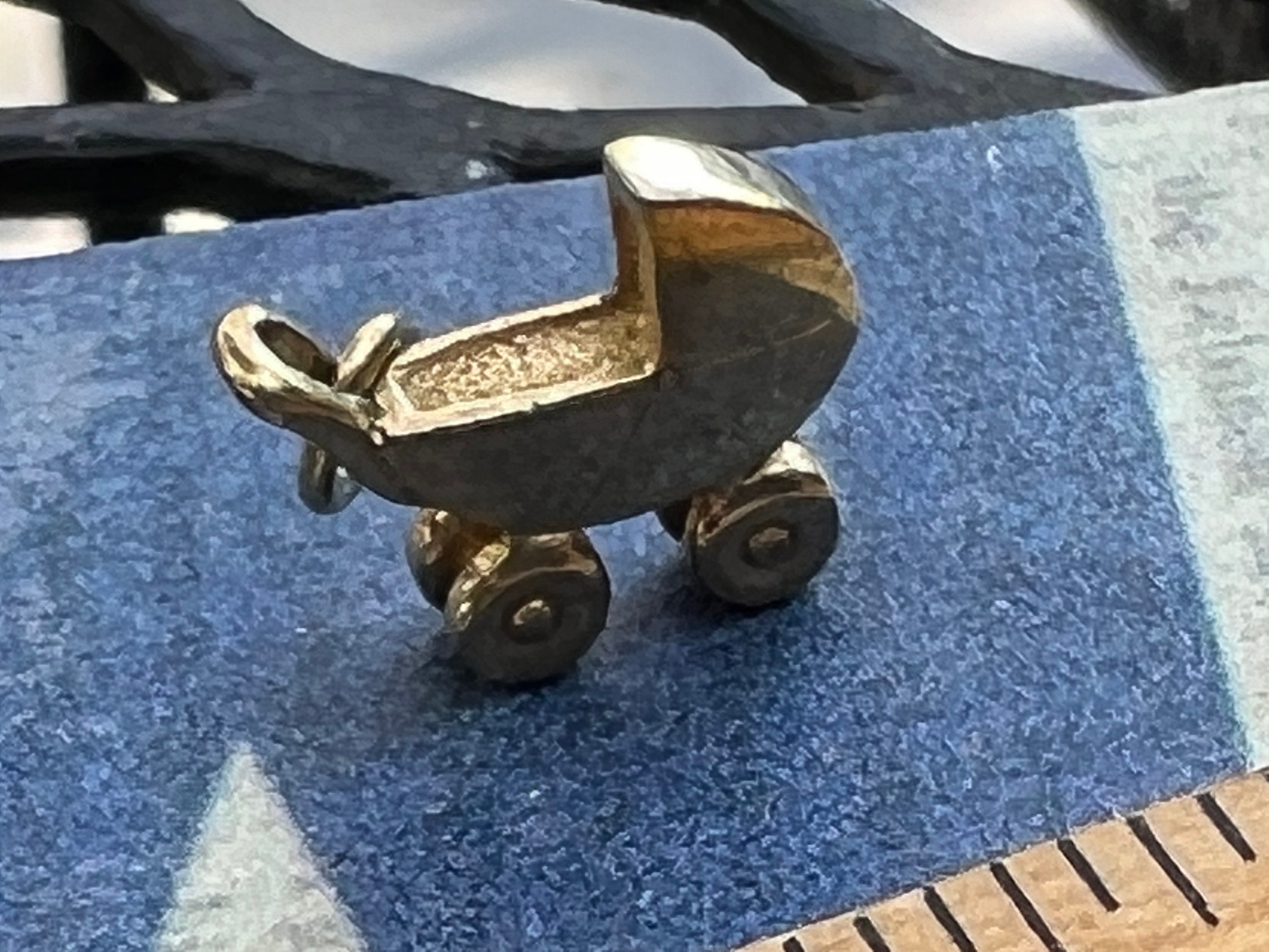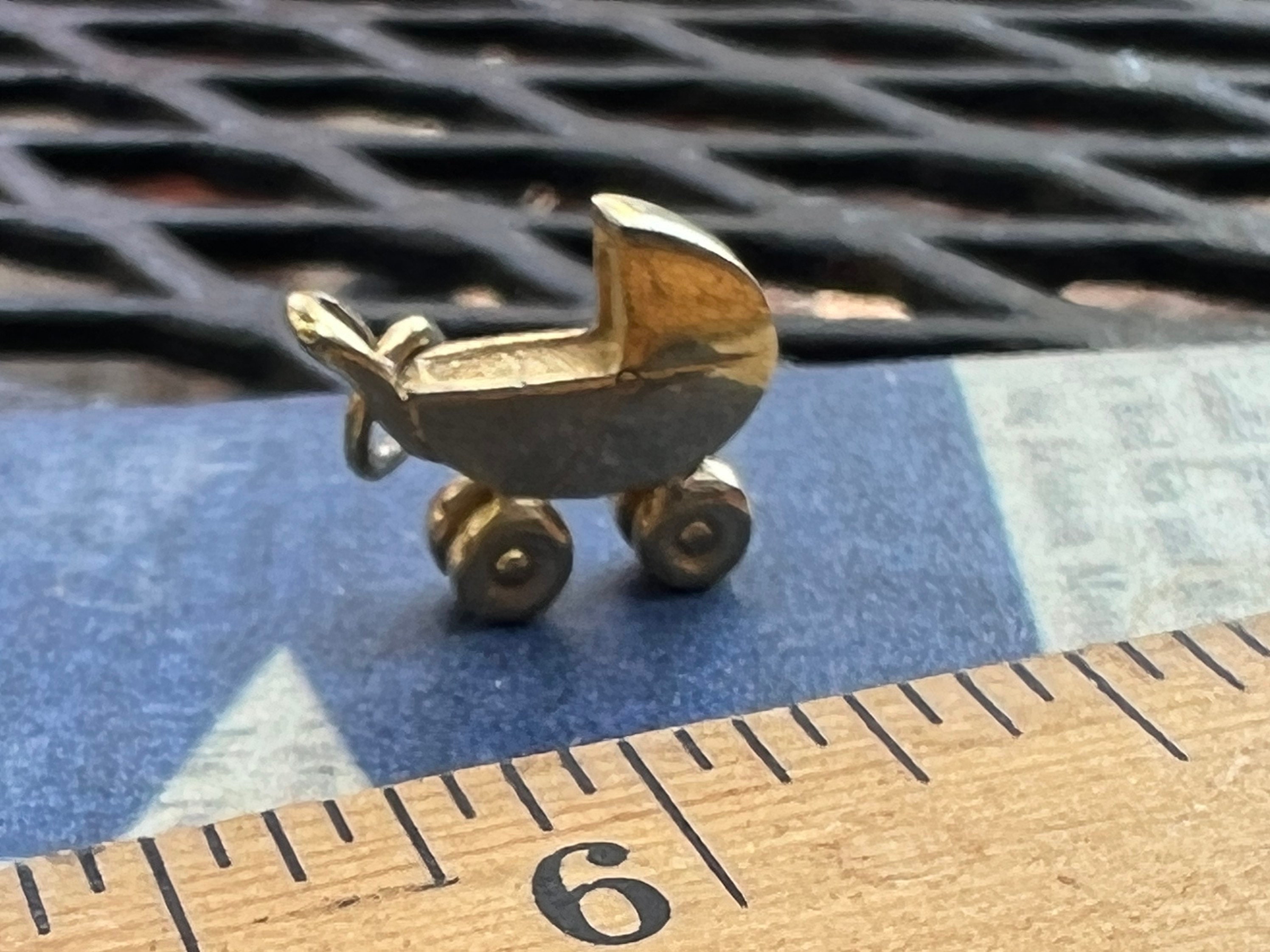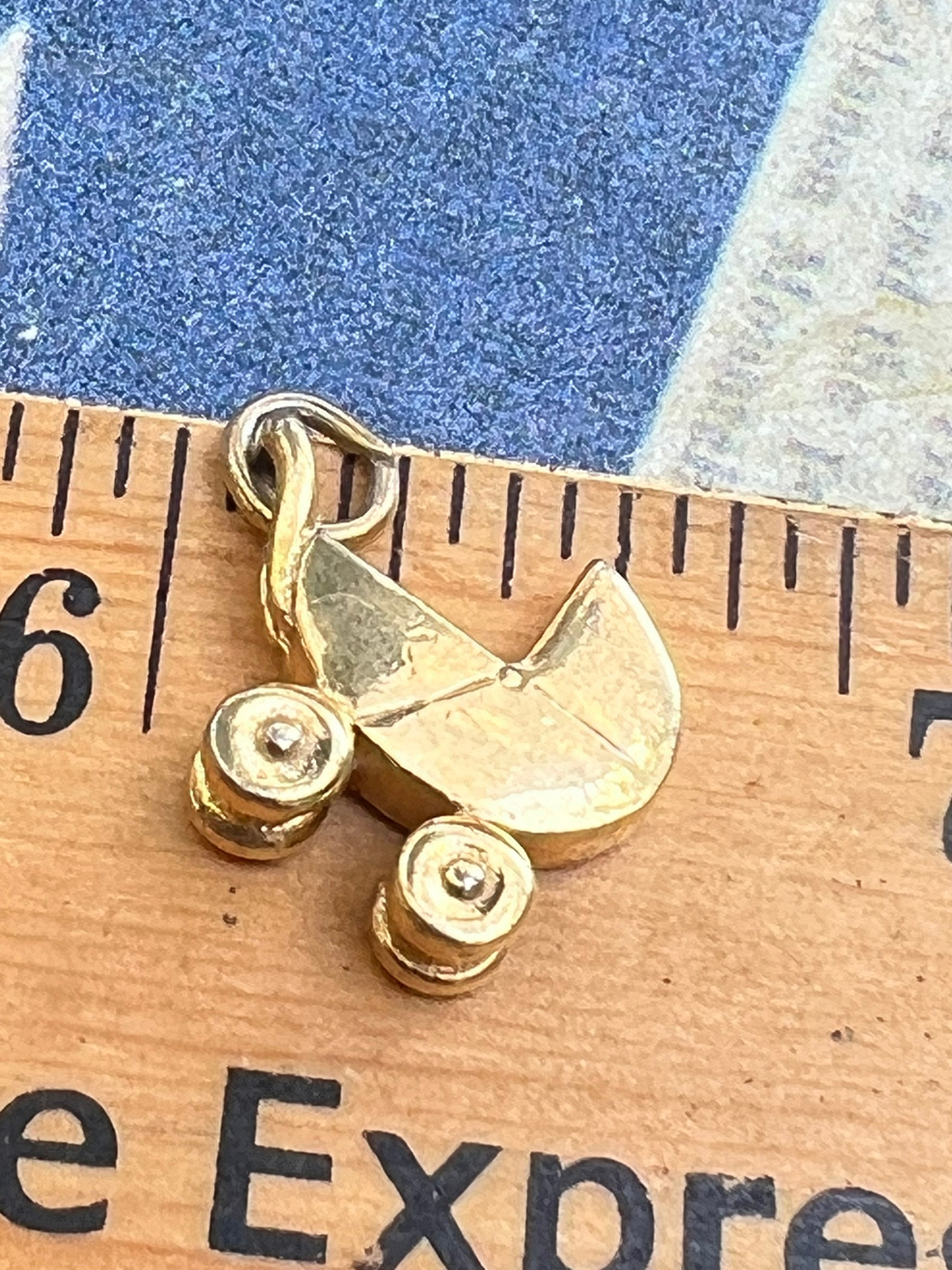 Adorable 10k Gold over 925 Silver Baby Buggy Charm for Charm Bracelet