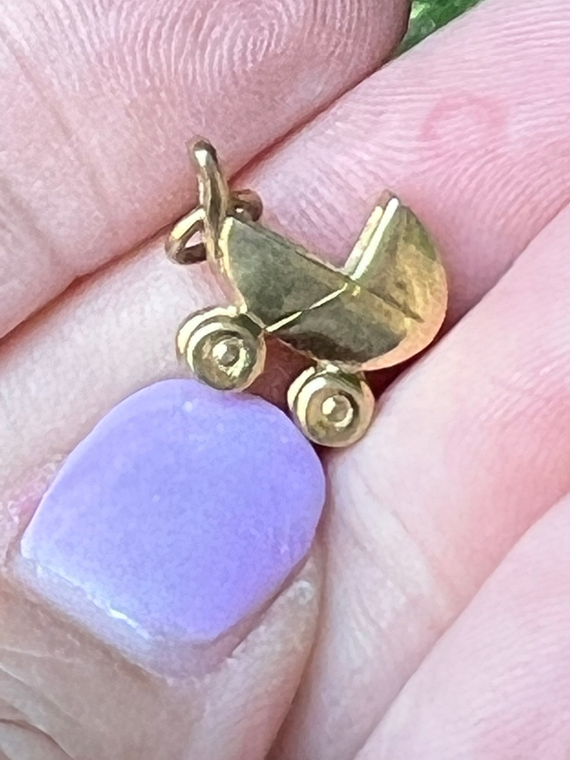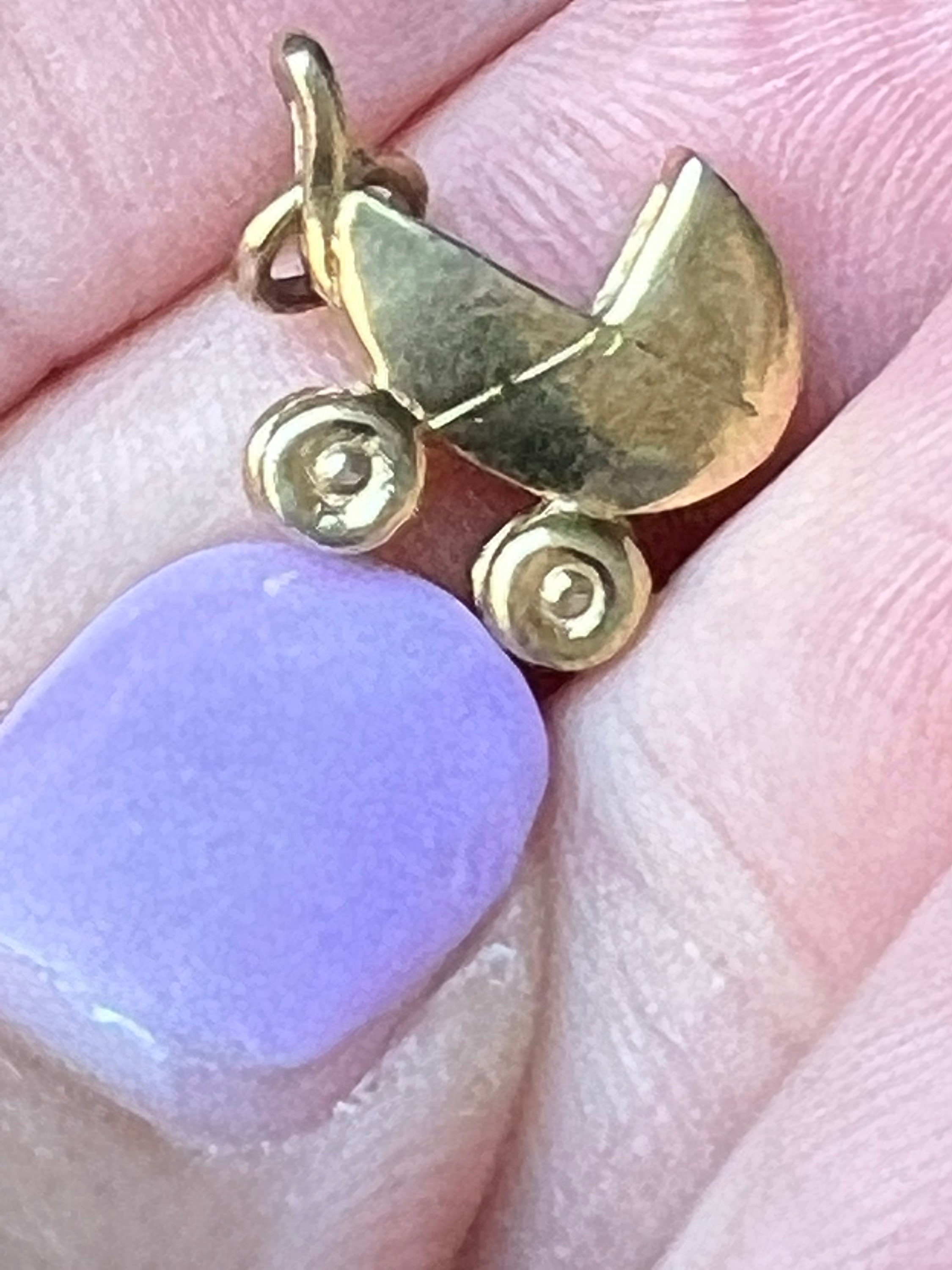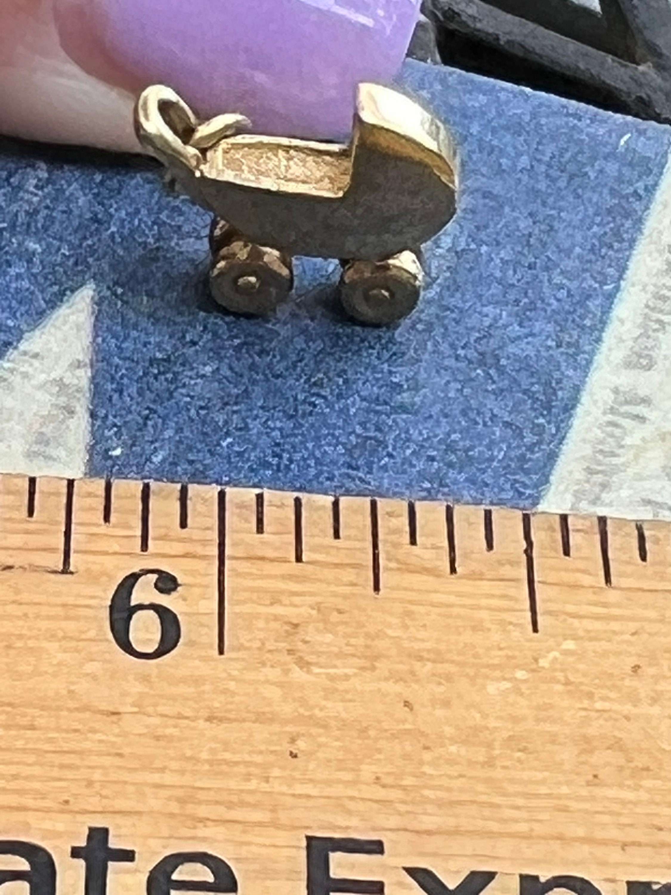 Adorable 10k Gold over 925 Silver Baby Buggy Charm for Charm Bracelet
