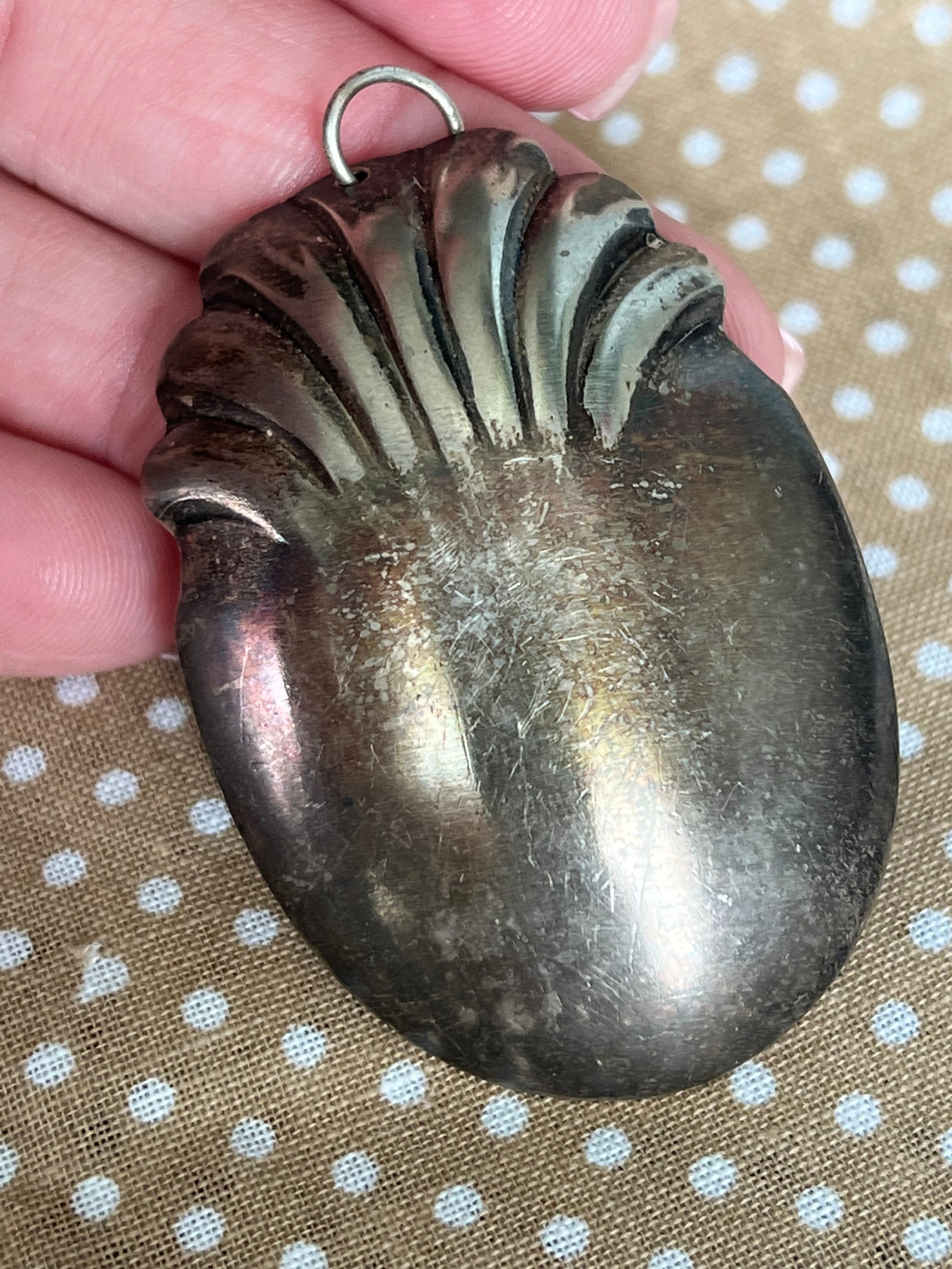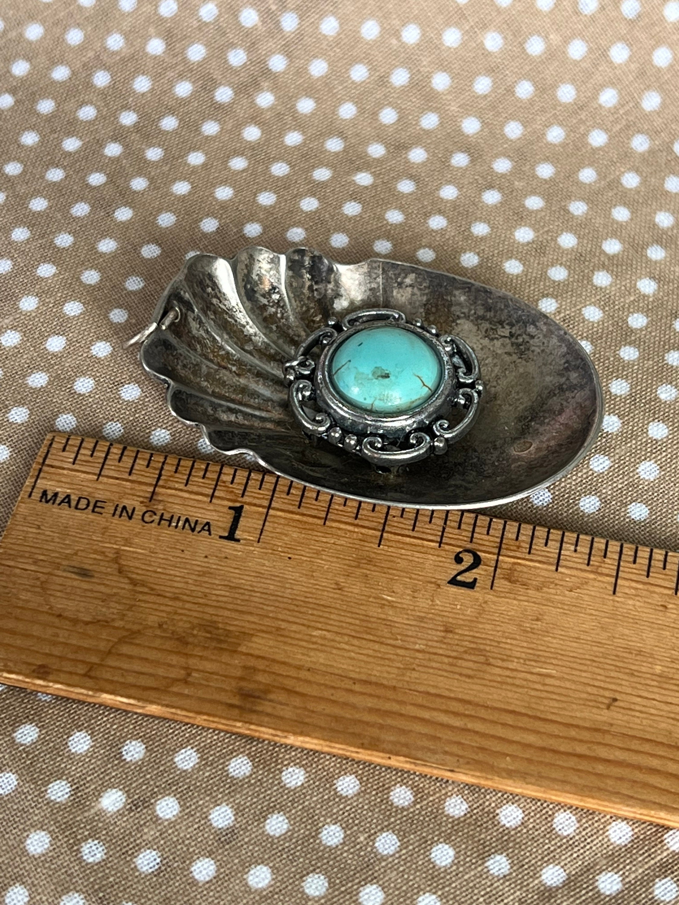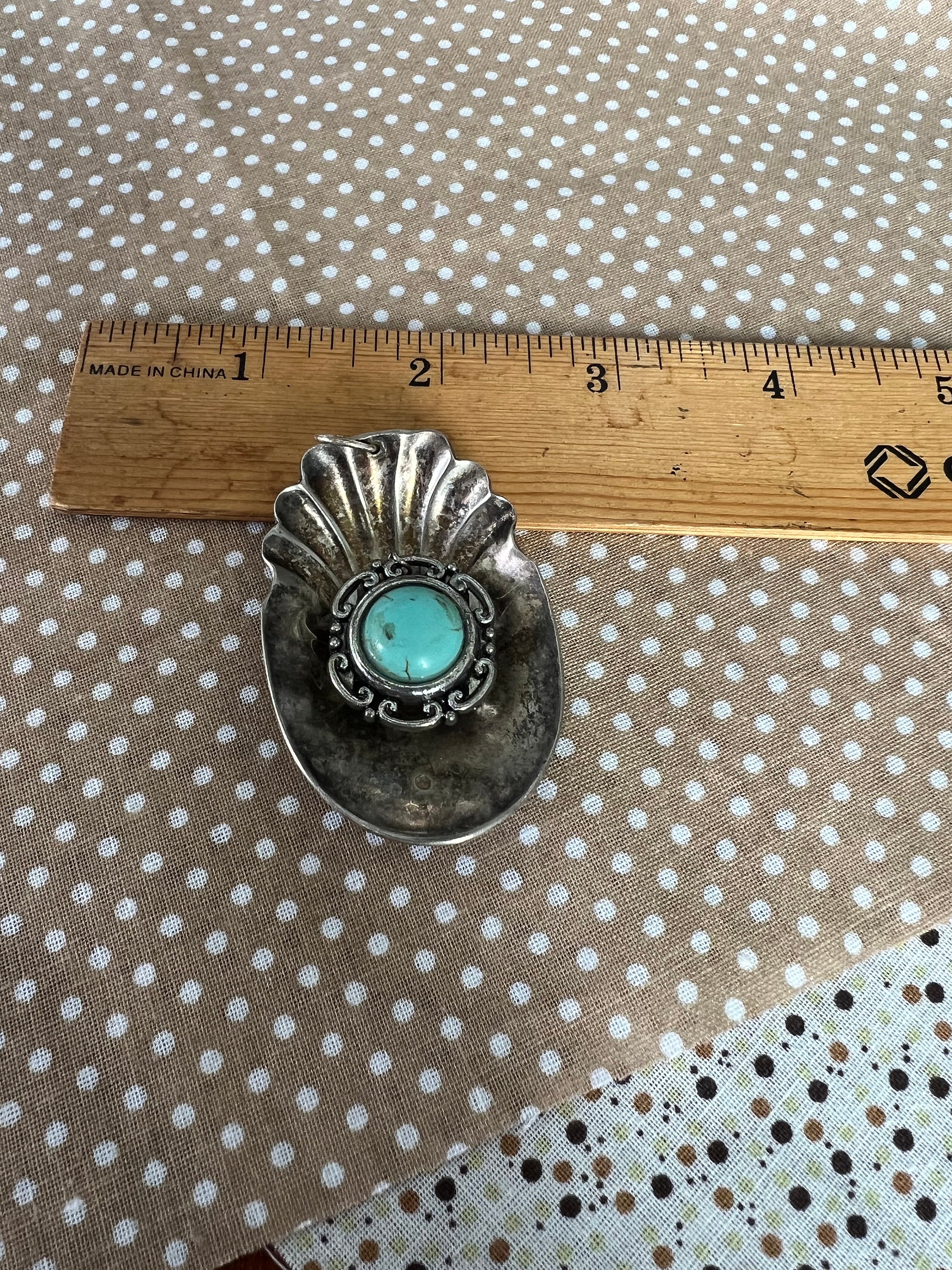 Repurposed Vintage Silver Plate Spoon Pendant with Faux Turquoise Flower Accent 2.25 Inch