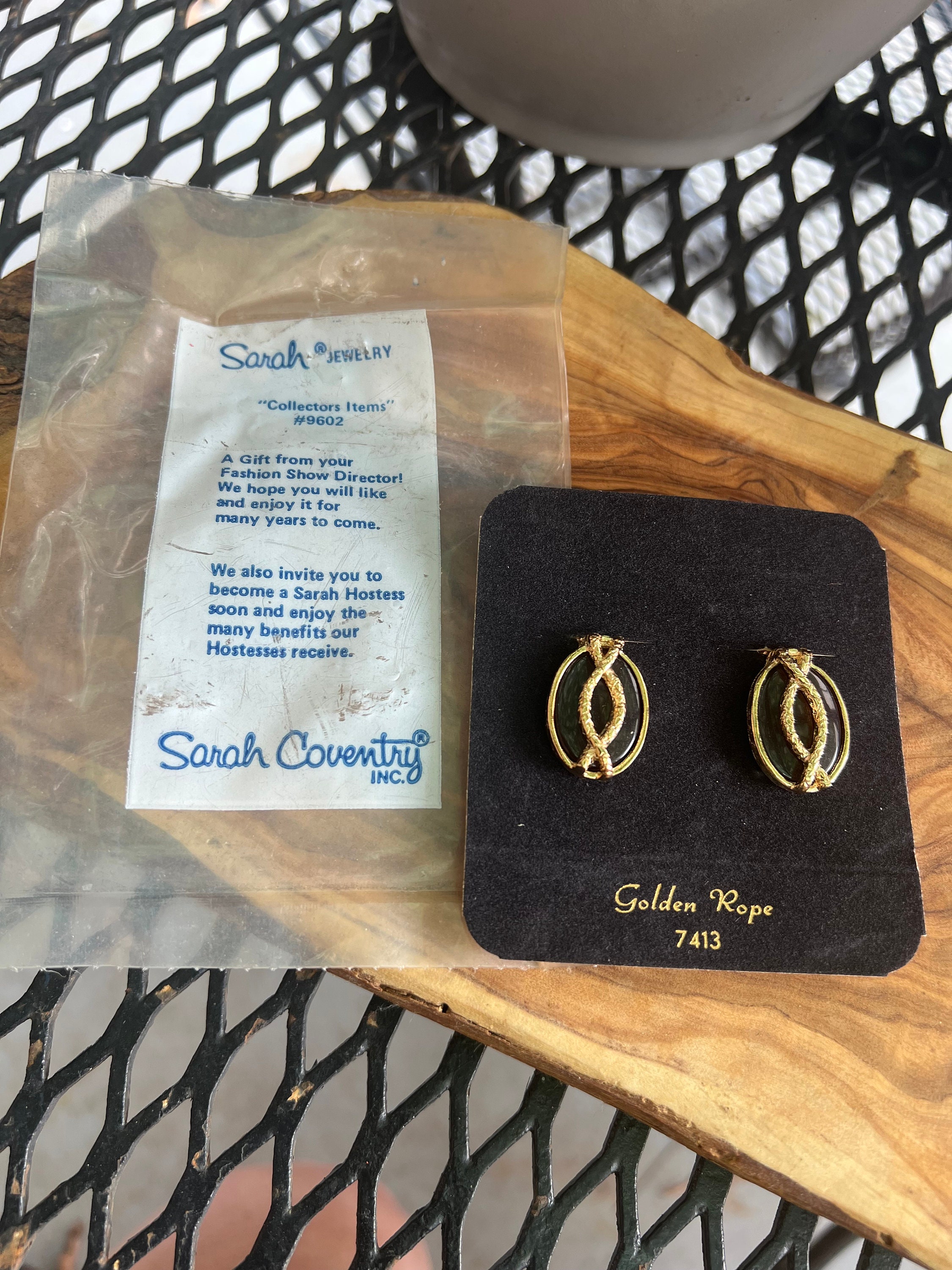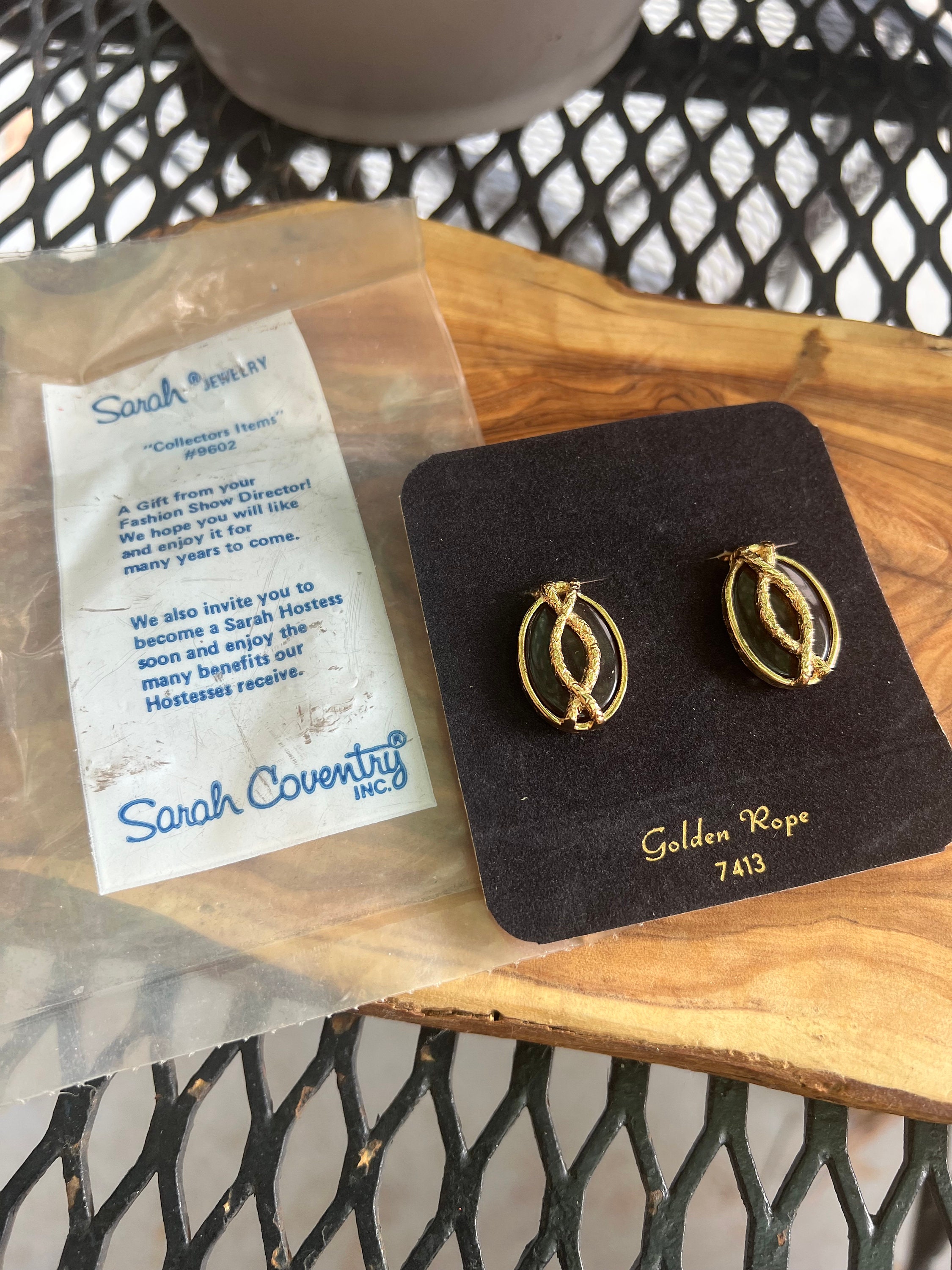 Vintage Sarah Coventry Golden Rope Clip Earrings in Original Packaging Never Worn