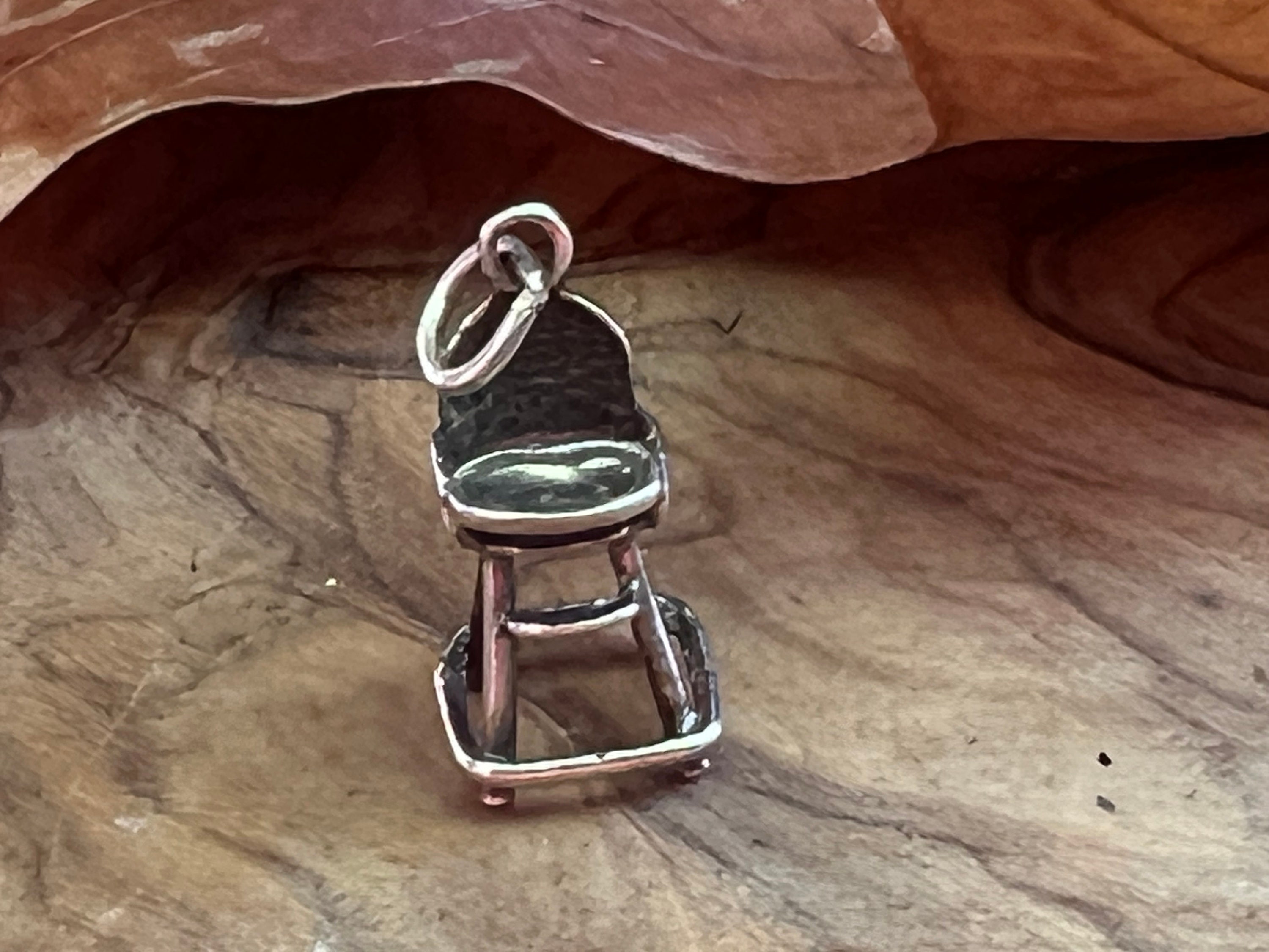 Sterling Silver Baby High Chair Charm Ready for Charm Bracelet or Chain