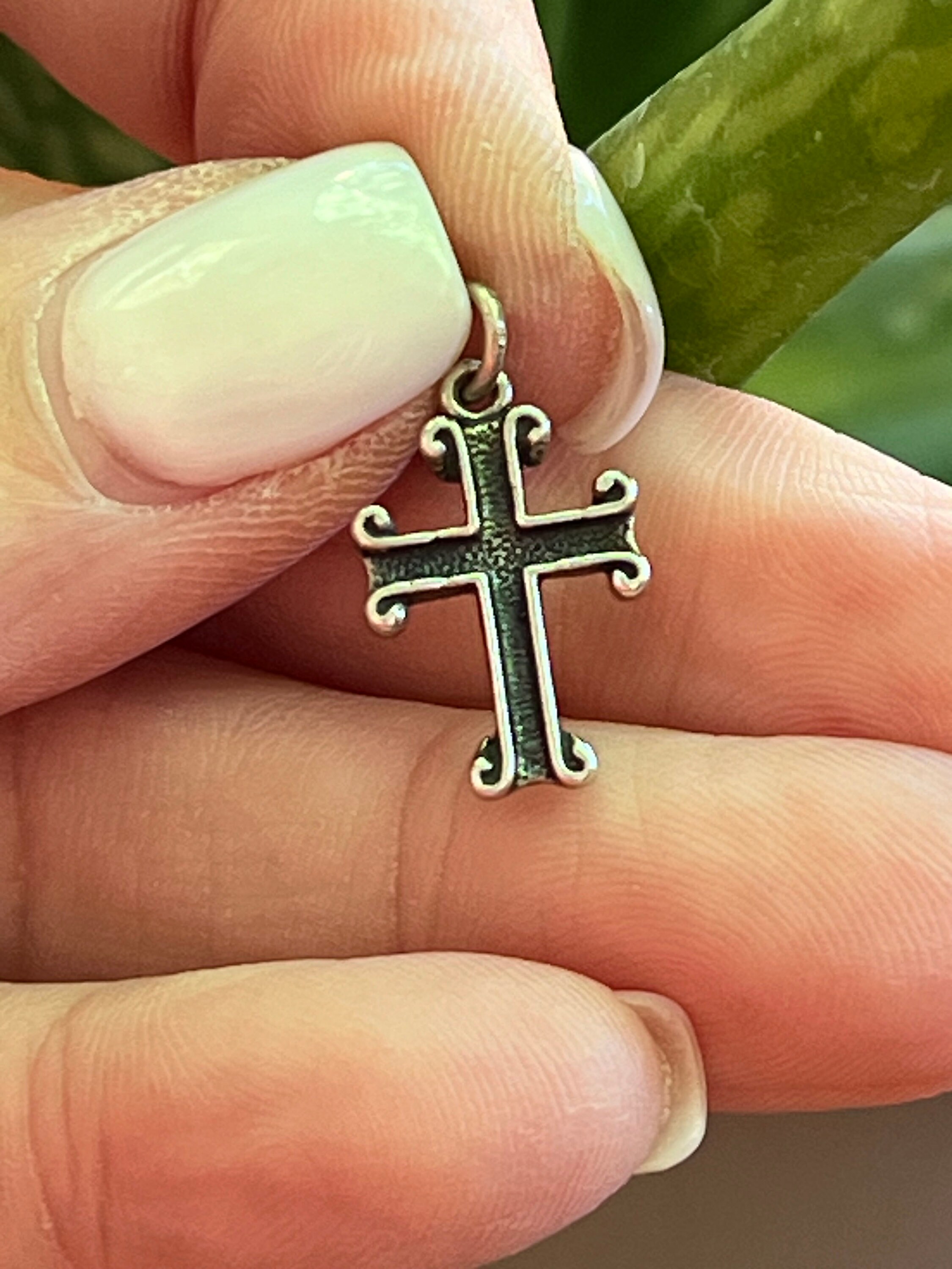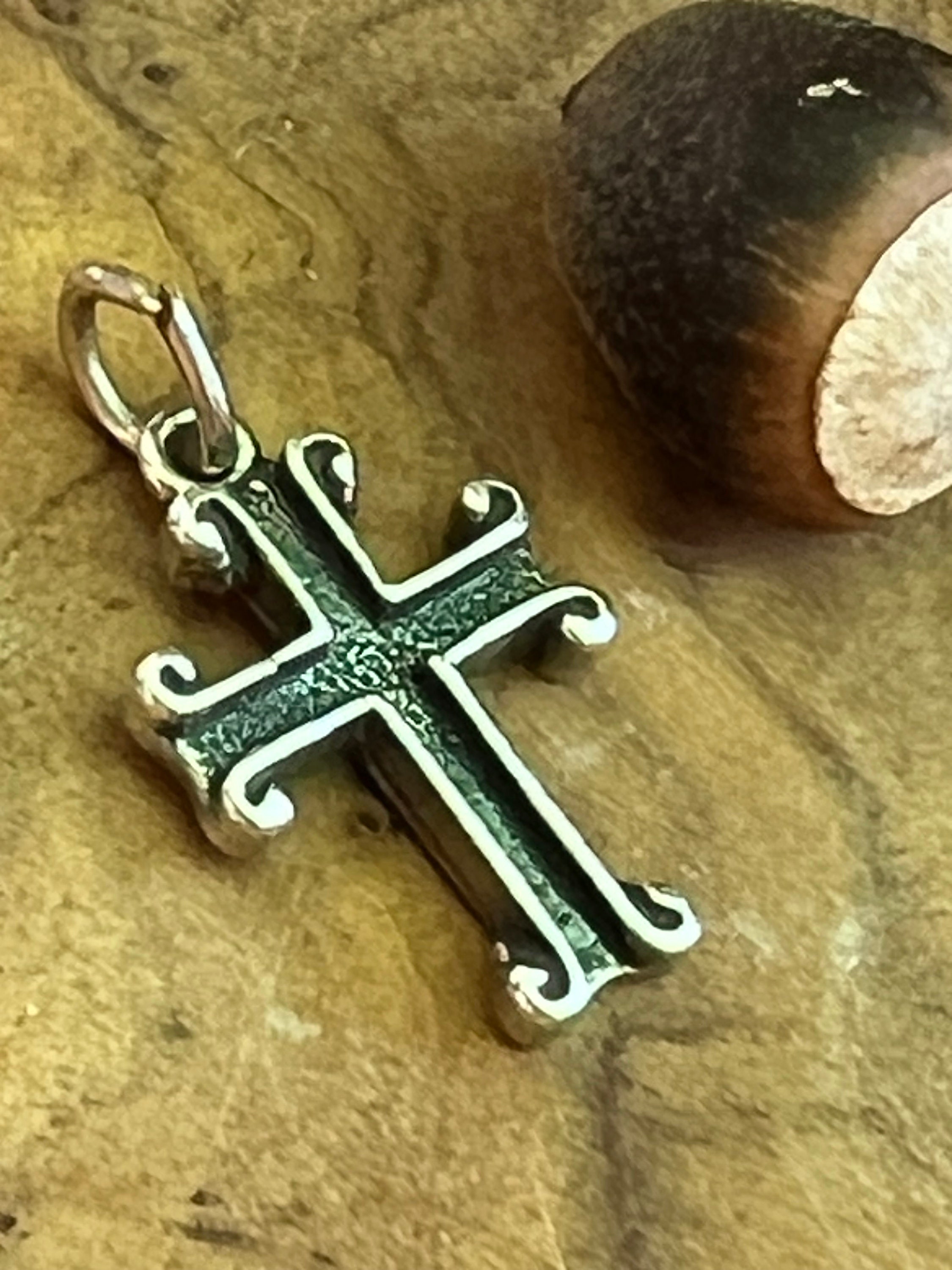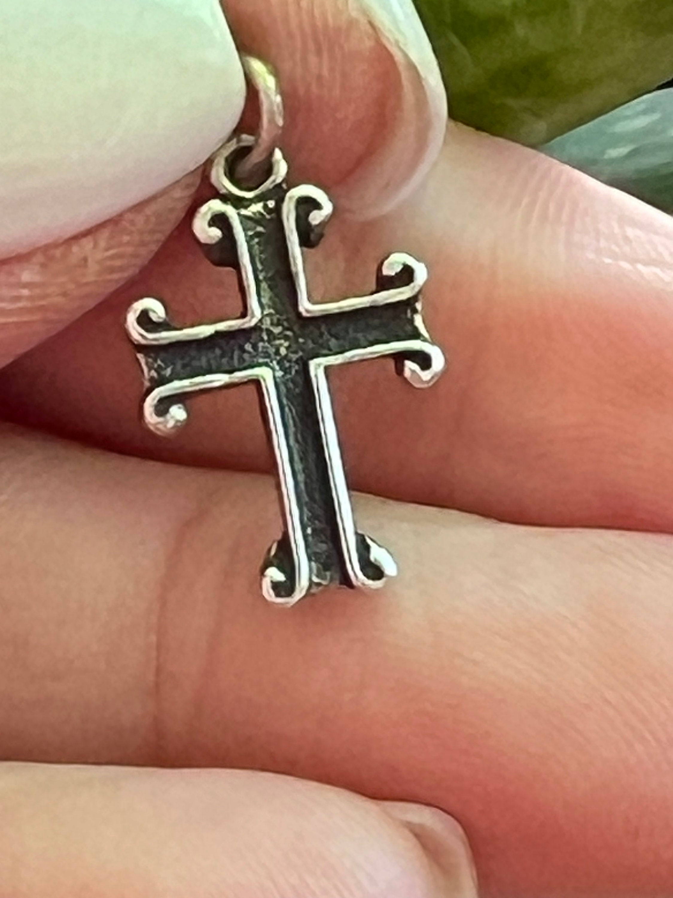 Tiny Sterling Silver Scrolled Cross for Charm Bracelet or Chain