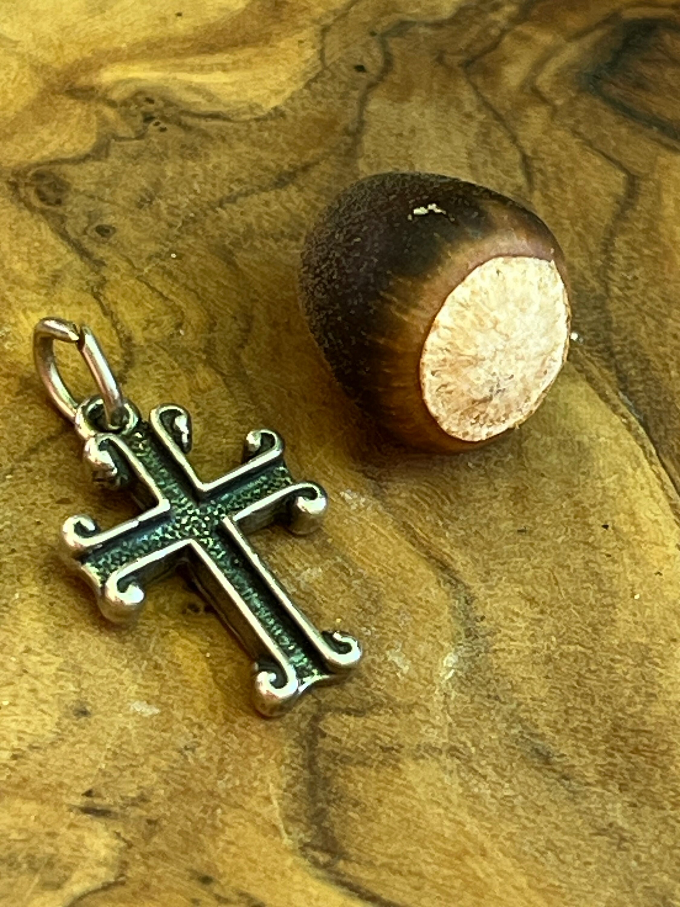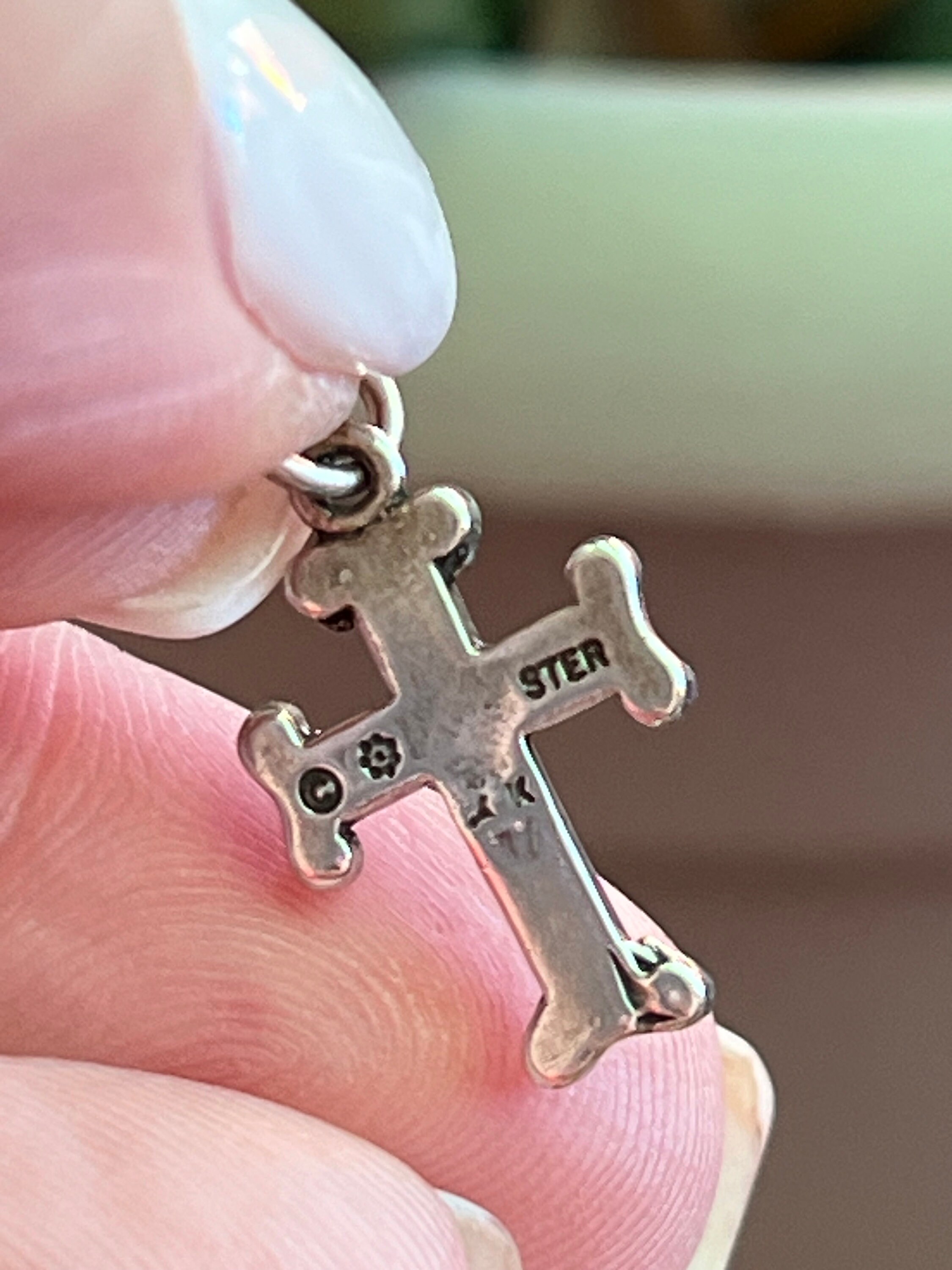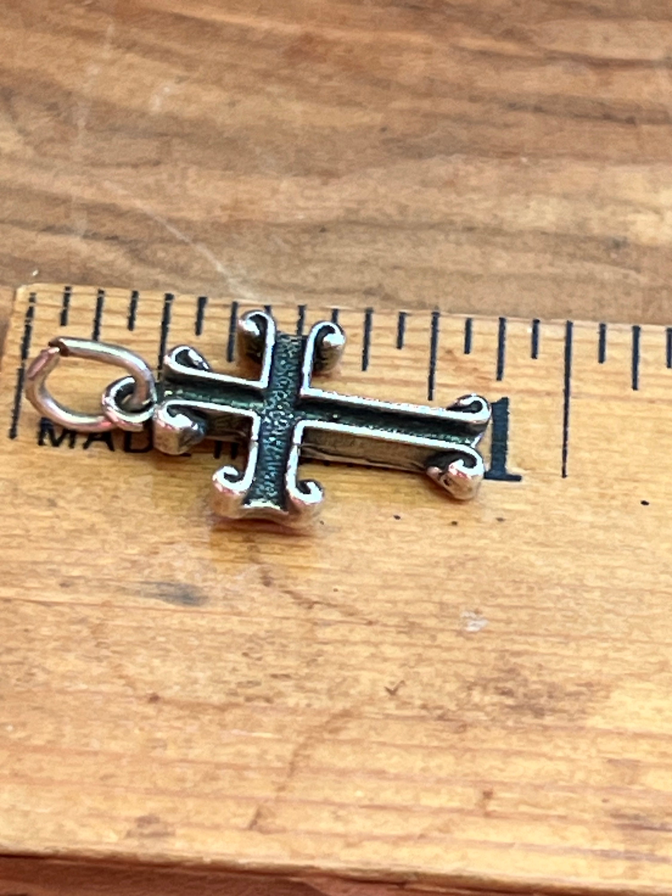 Tiny Sterling Silver Scrolled Cross for Charm Bracelet or Chain