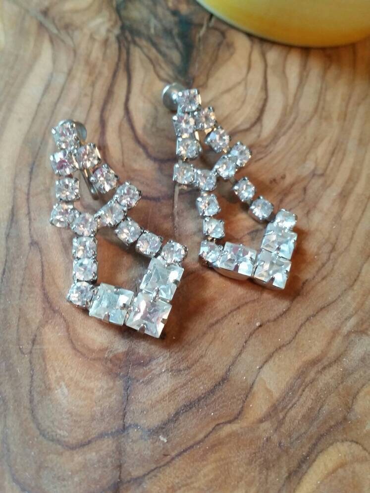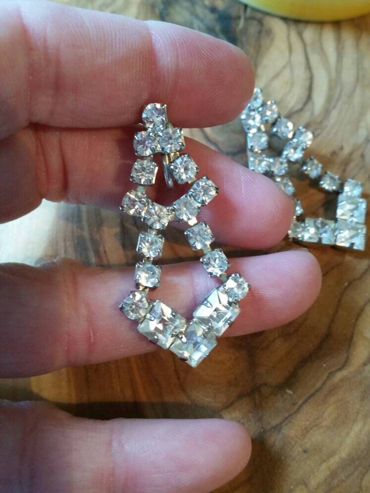 Gorgeous Vintage Rhinestone Chandelier Screw Back Earrings 1 5/8 inch drop . Simply beautiful! Bridal or Evening.