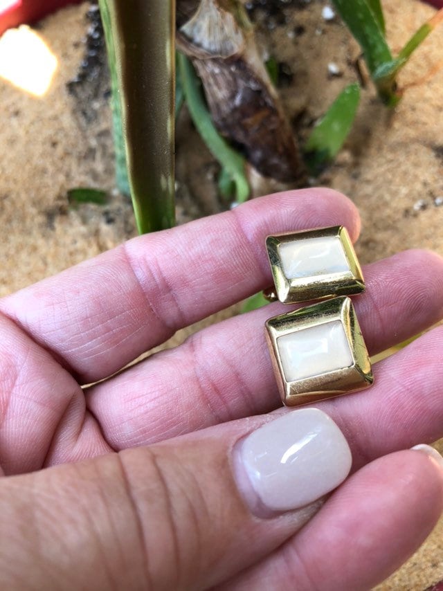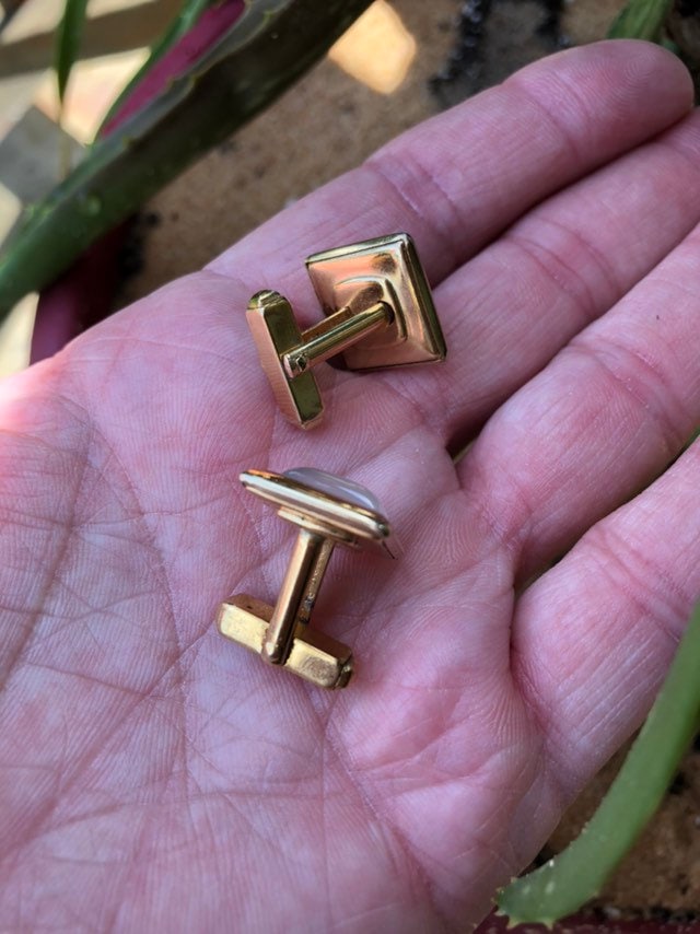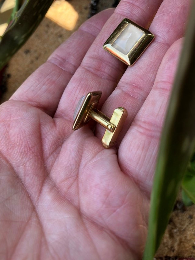 Vintage Anson Faux Mother Of Pearl and Gold Cufflinks 1/2 inch square marked Anson
