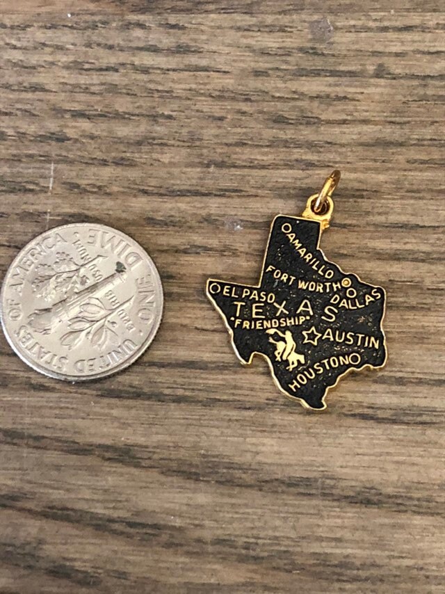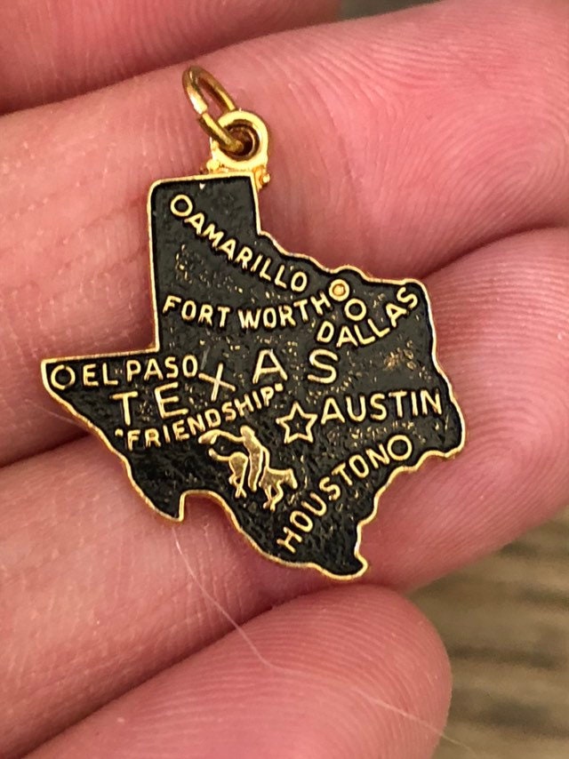 Texas Charm Ready for Bracelet or Necklace Gold Tone and Black Enamel