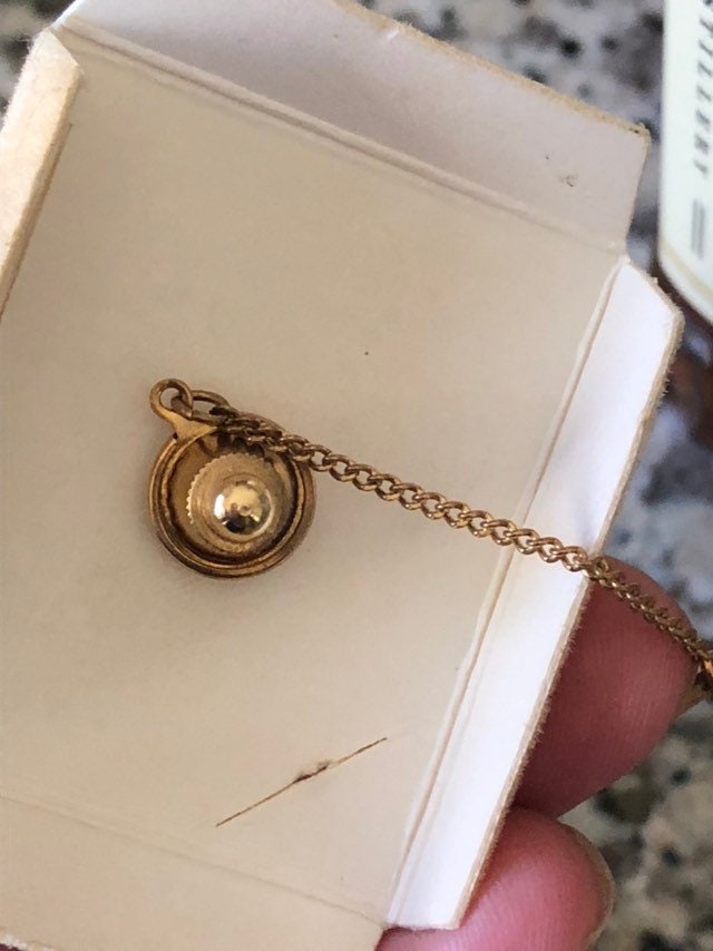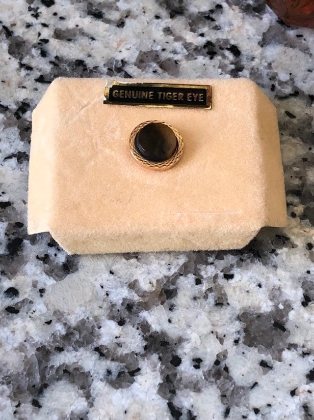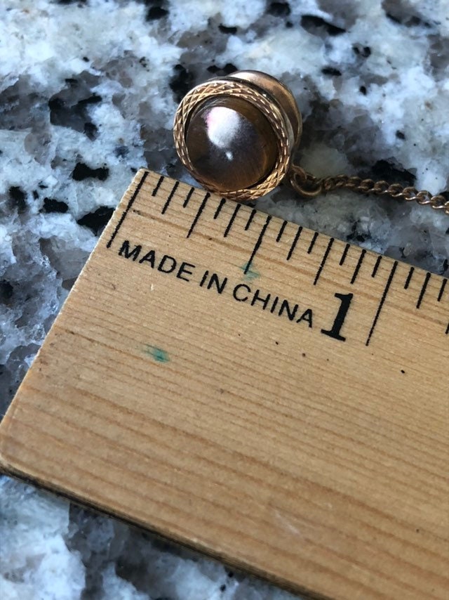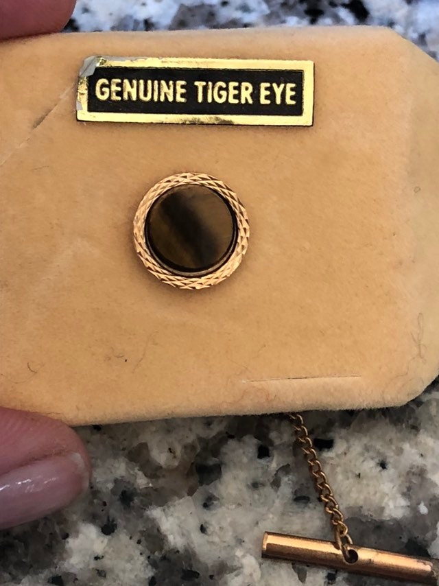 Genuine Tigers Eye Gold Tone Tie Tack With Safety Chain