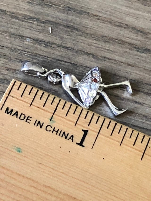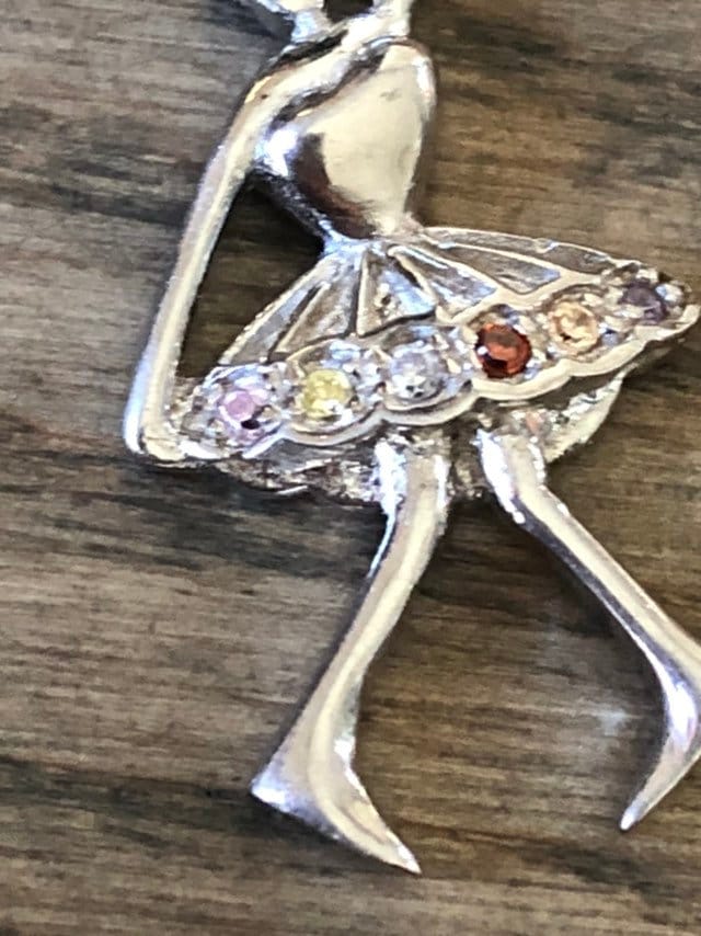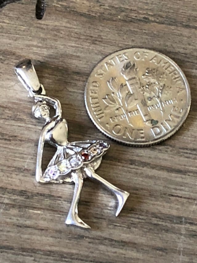 925 Silver and Rhinestone Ballerina Pendant Charm Ready for Necklace