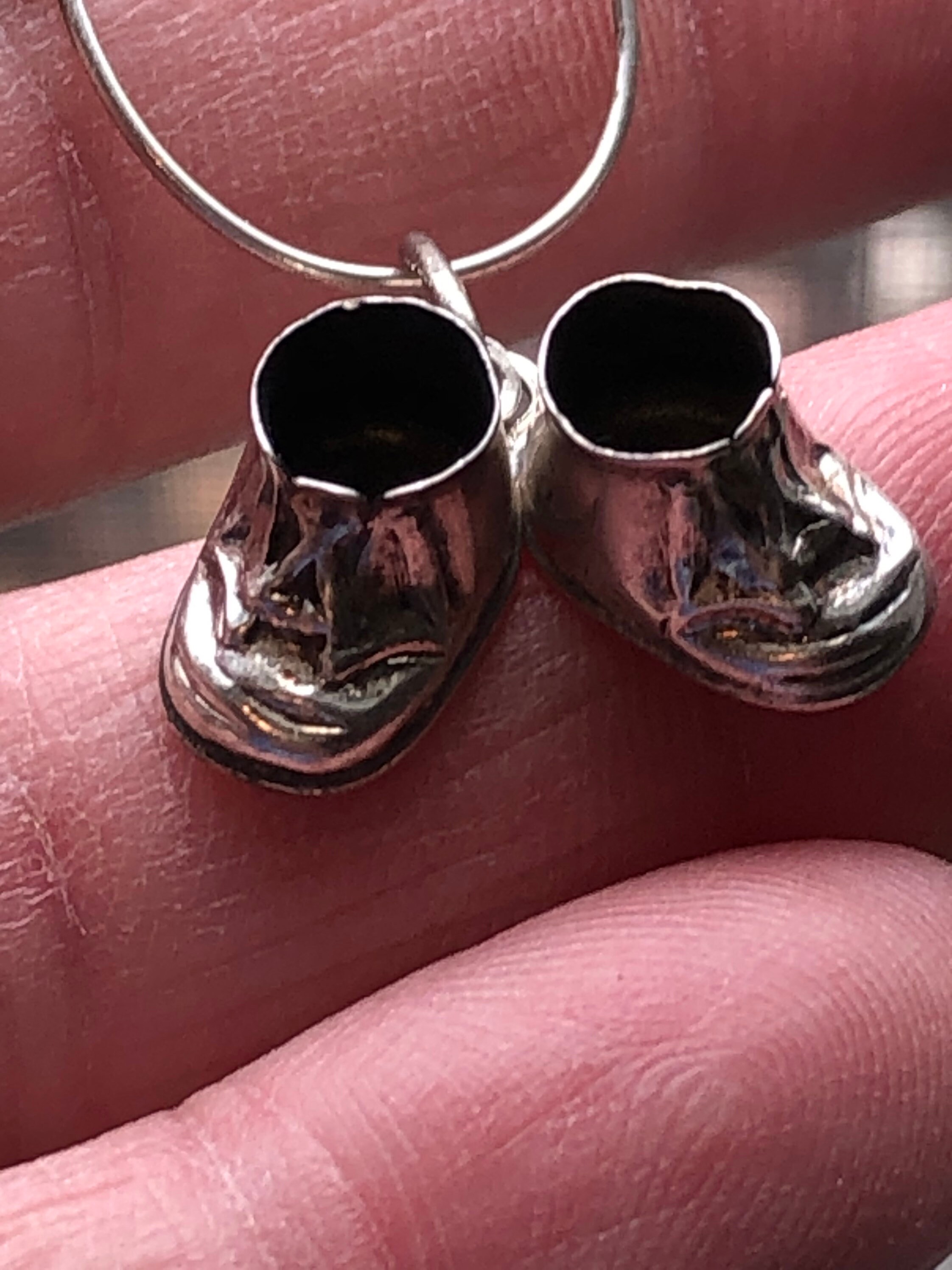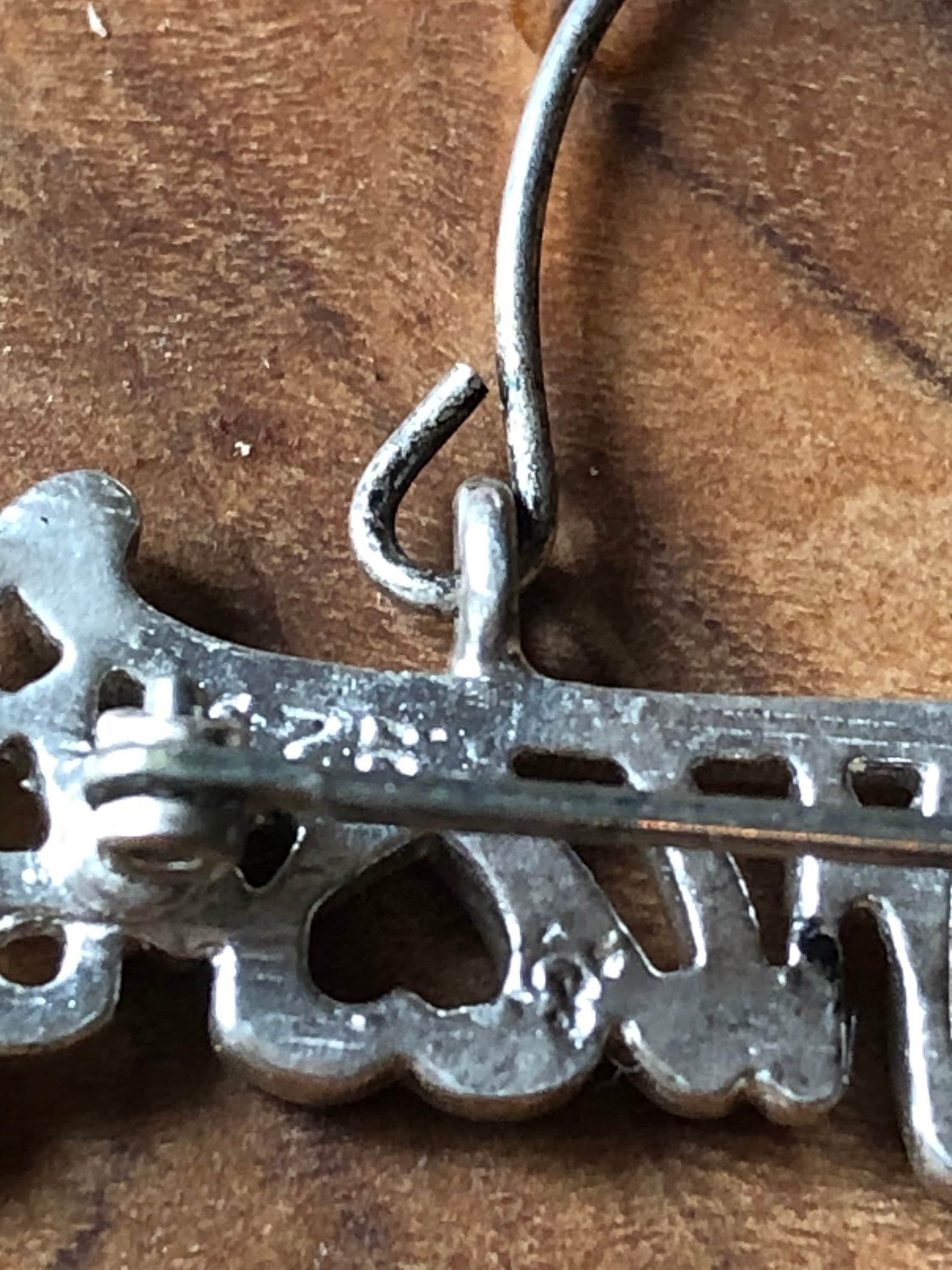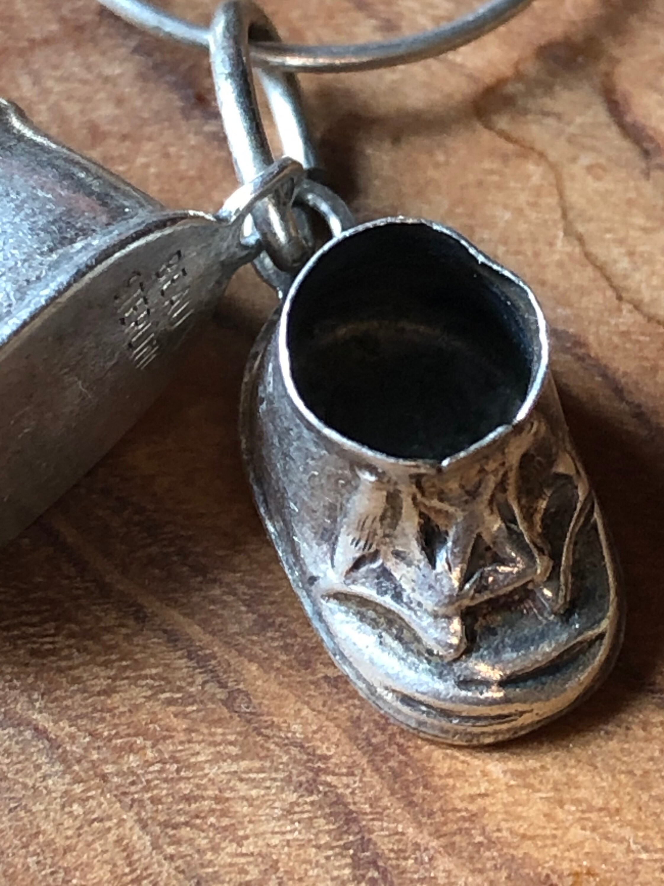 Vintage Charm Pin with Sterling Baby Shoes Charms