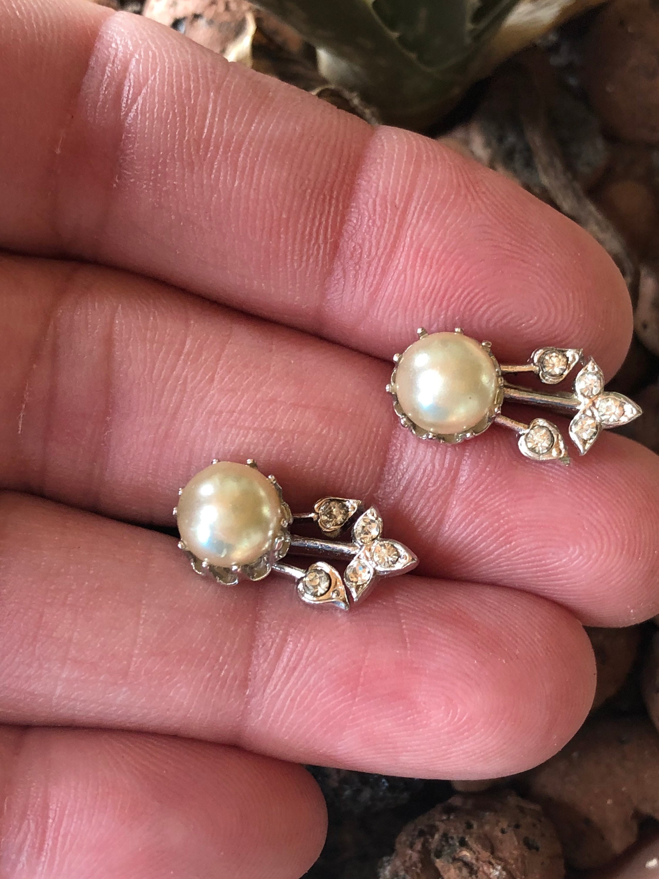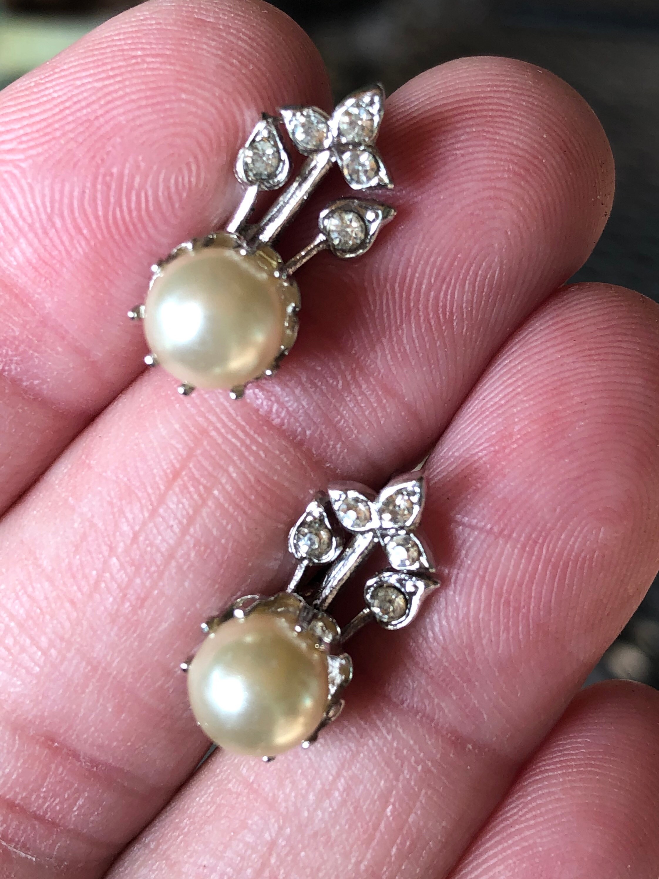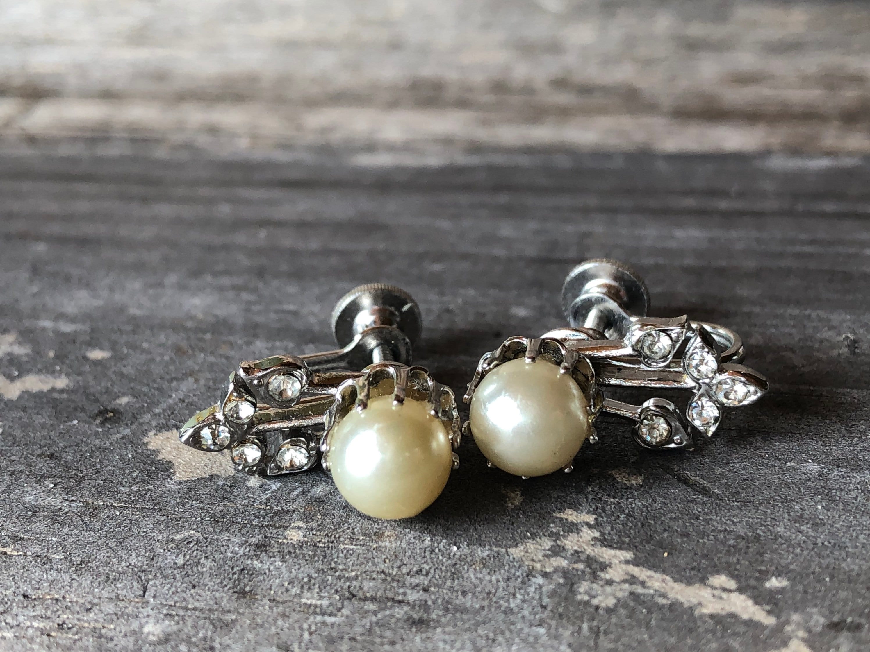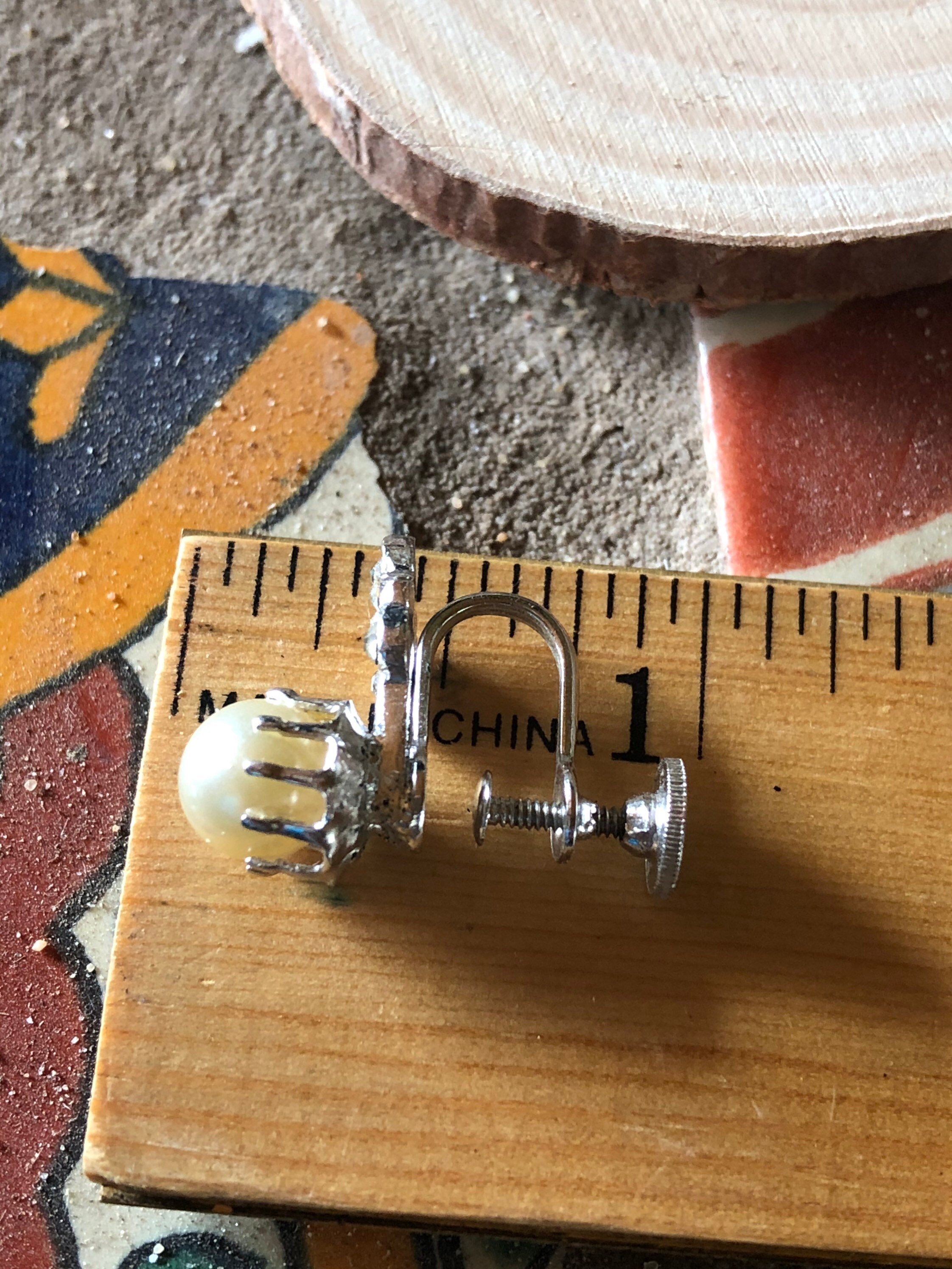 Vintage Crown and Faux Pearl Screw Back Earrings
