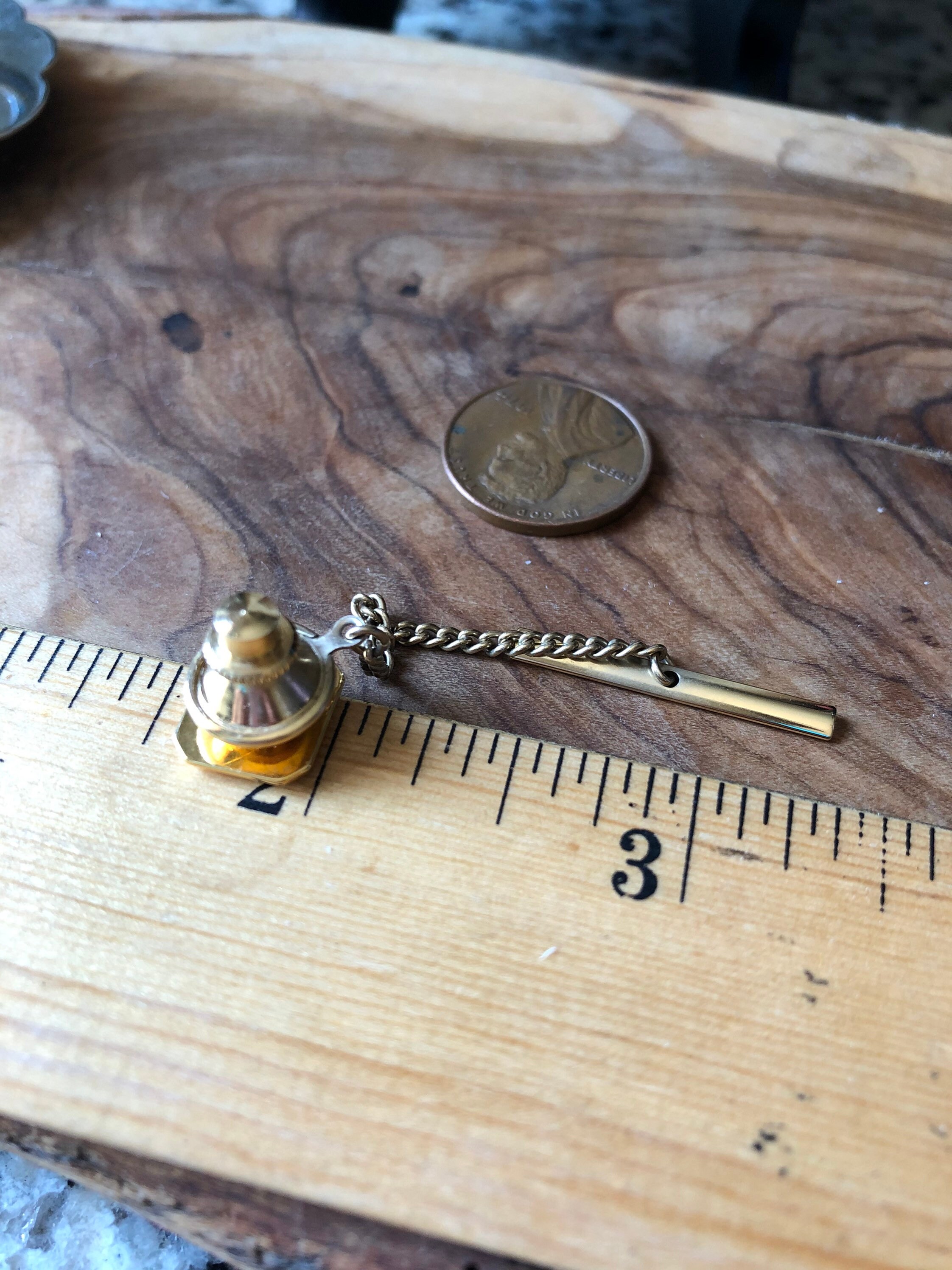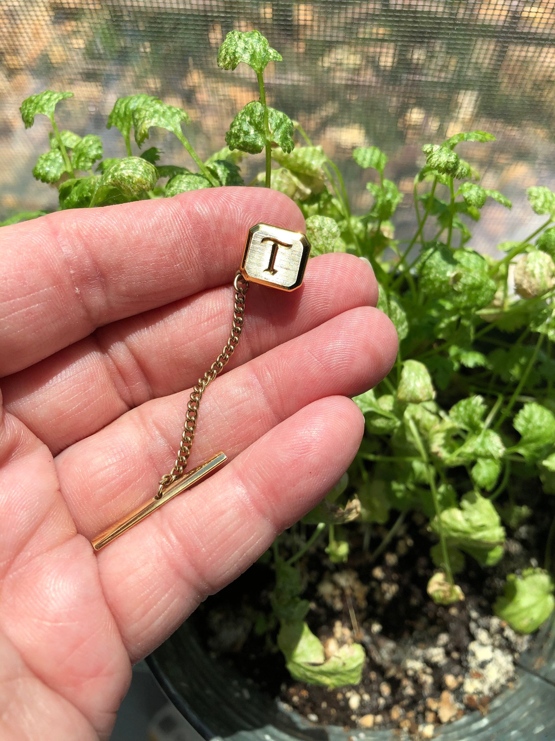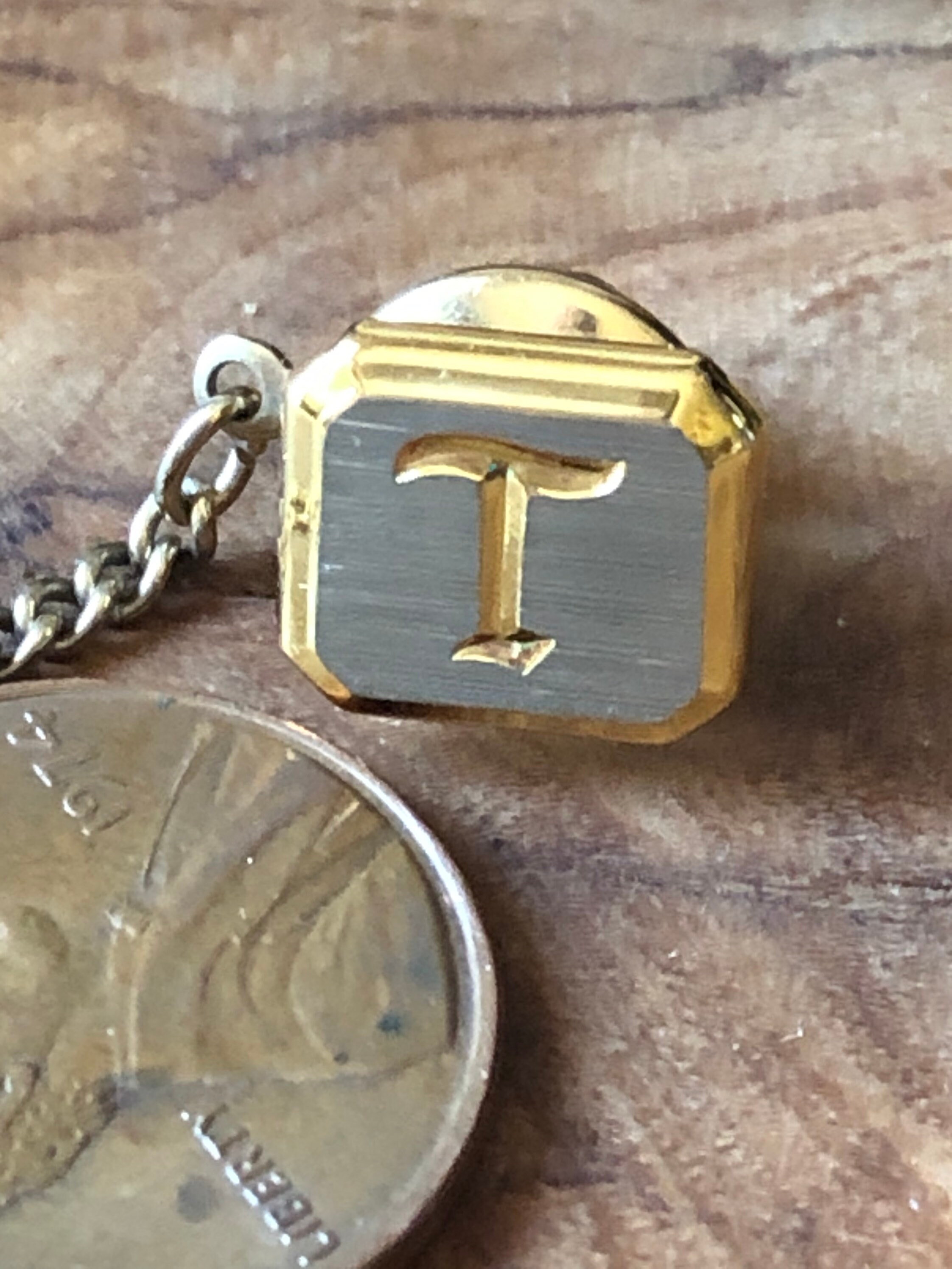 Initial T Vintage Tie Tack With Safety Chain Monogram Jewelry