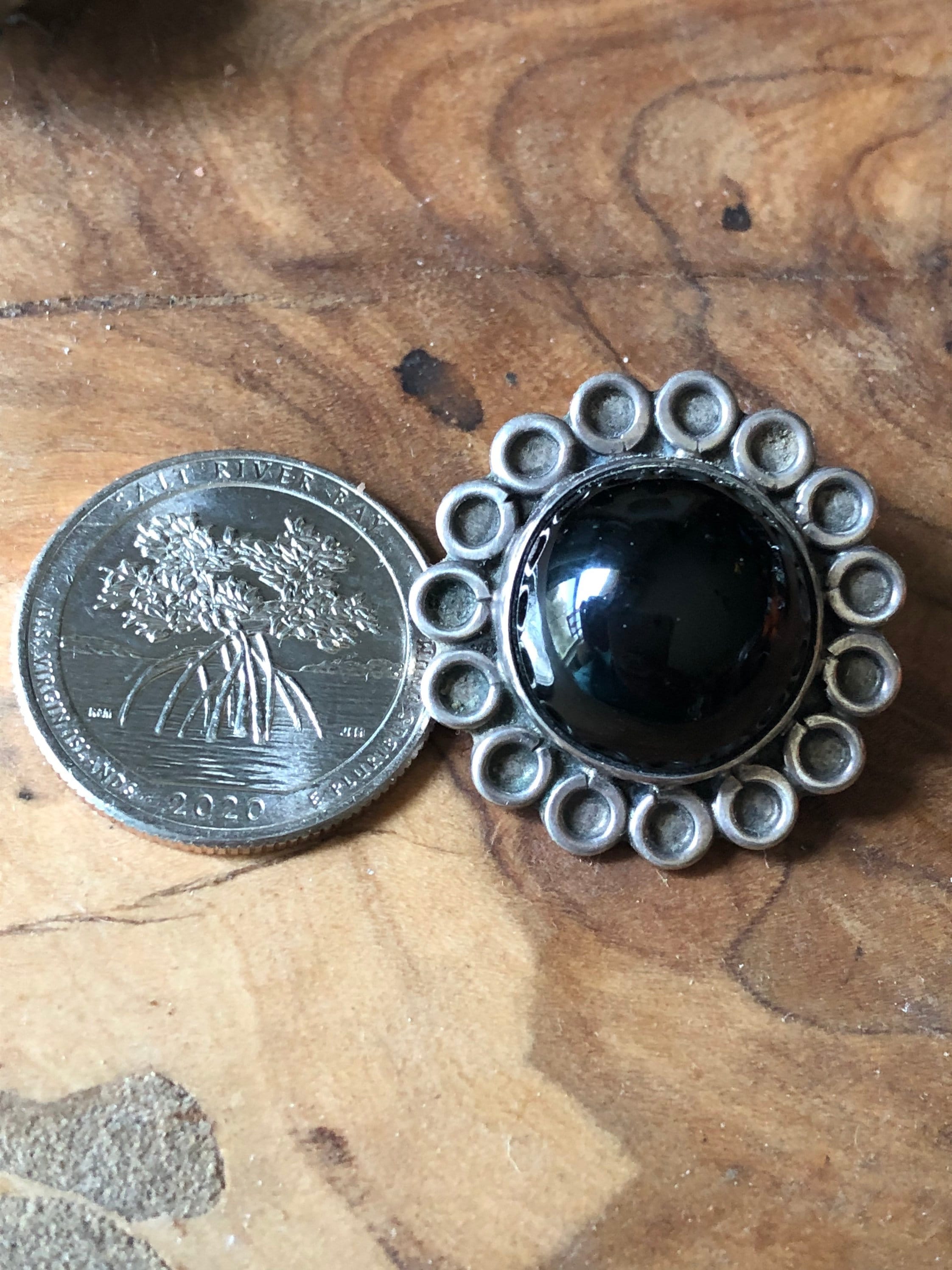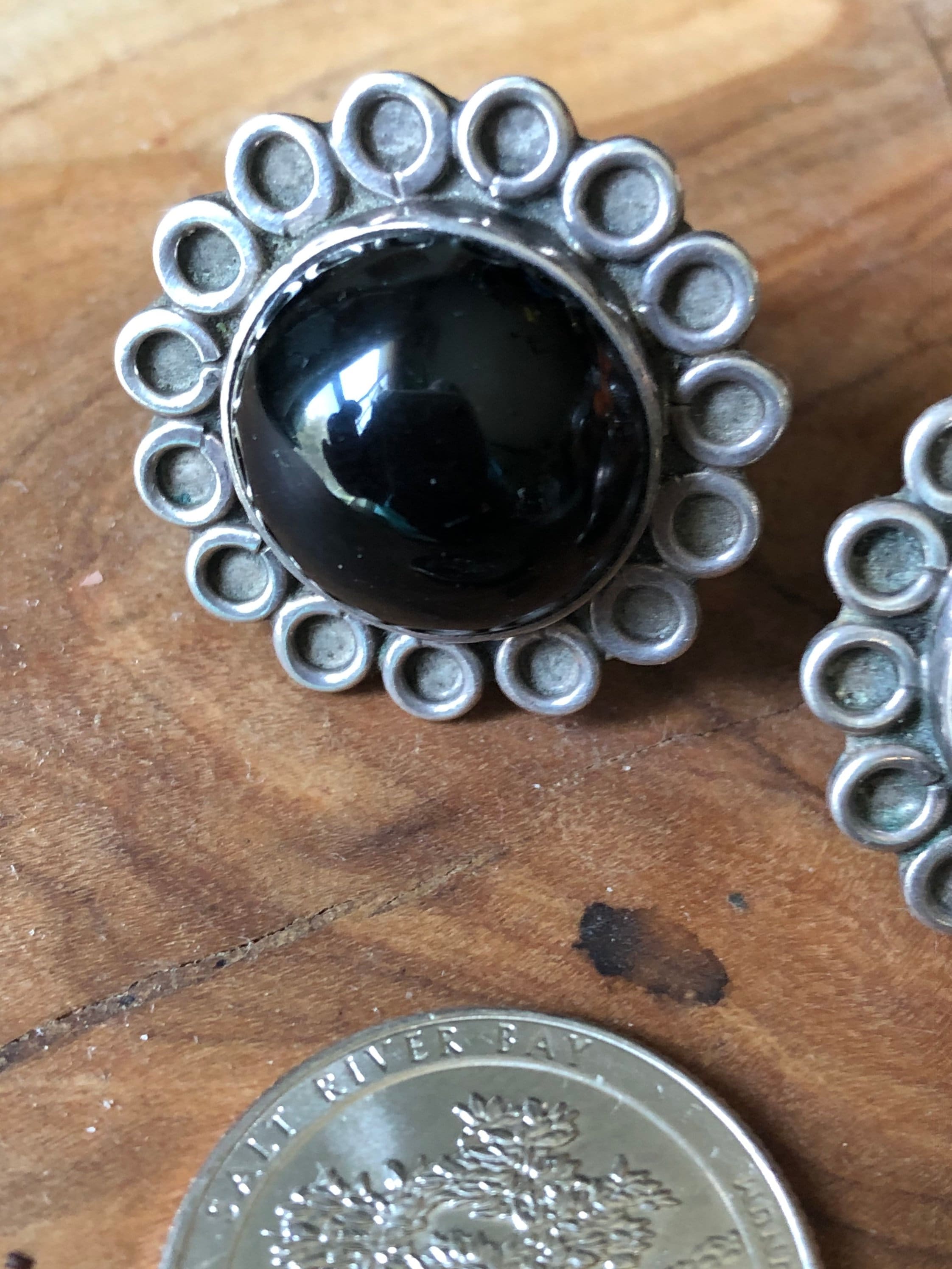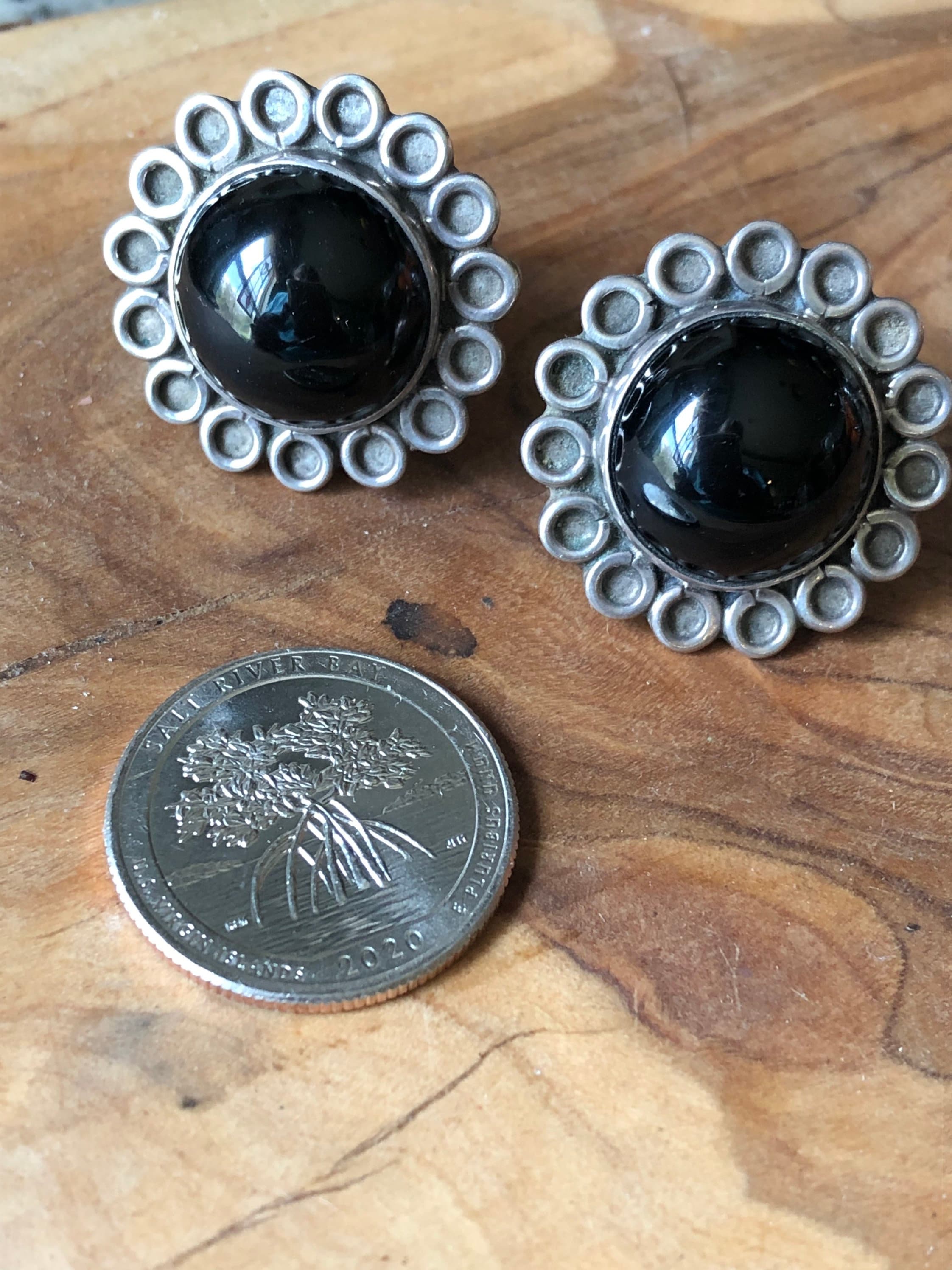 Beautiful Onyx and 925 Silver Sunflower Clip Earrings